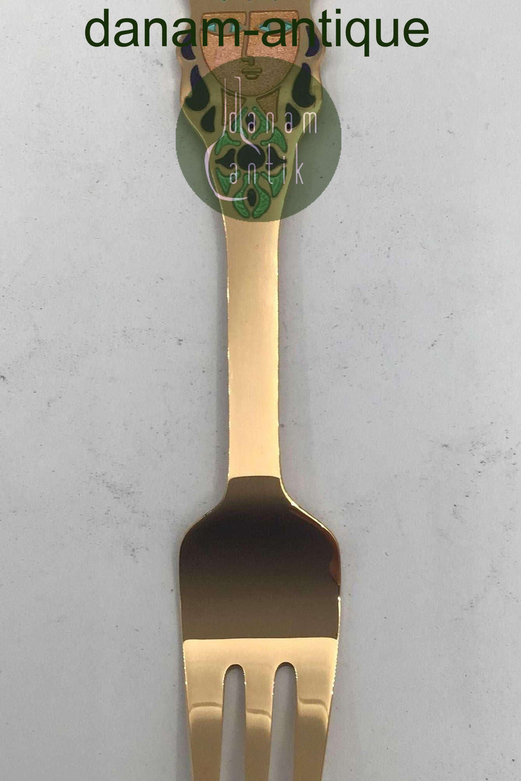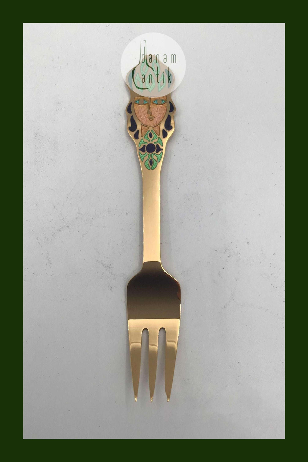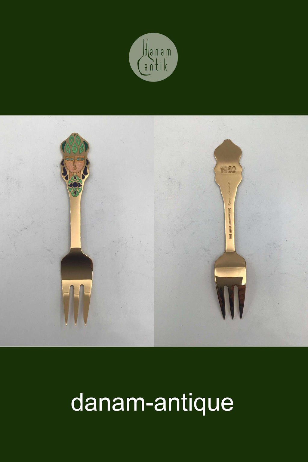 A. Michelsen Julekagegaffel 1982 I forgyldt Sterling Sølv med emalje