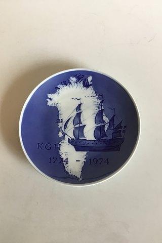 Royal Copenhagen Mindeplatte for KGH Den Kongelige Grønlandske Handel 200 år (1774-1974). Designet af Sven Vestergaard. Måler 20,5 cm