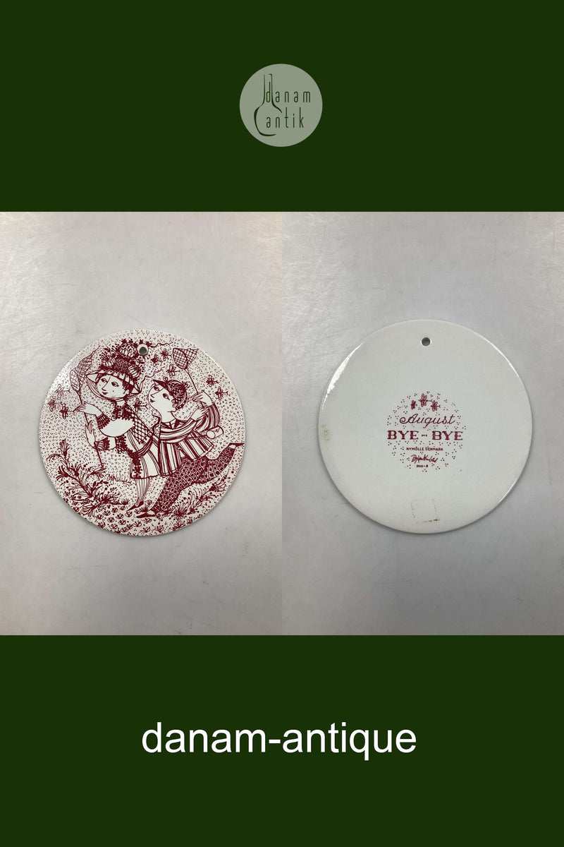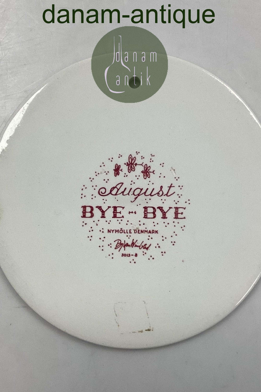 Rød månedsplatte i fajance for august måned - BYE-BYE. Designet af Bjørn Wiinblad for Nymølle. I god stand. Fabriksmærket på bagsiden. Mål: 15 cm (5.90 inch.)