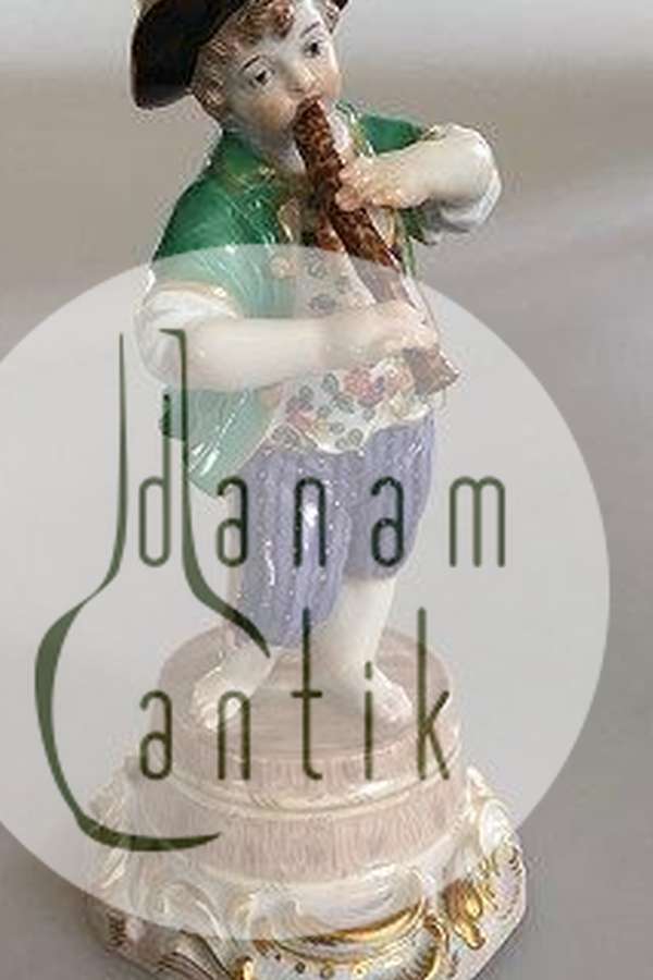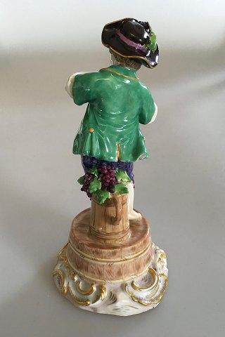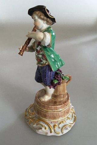 Meissen Figur Dreng med Fløjte på Vintønde Måler H 14,5 cm Fra efter 1934.