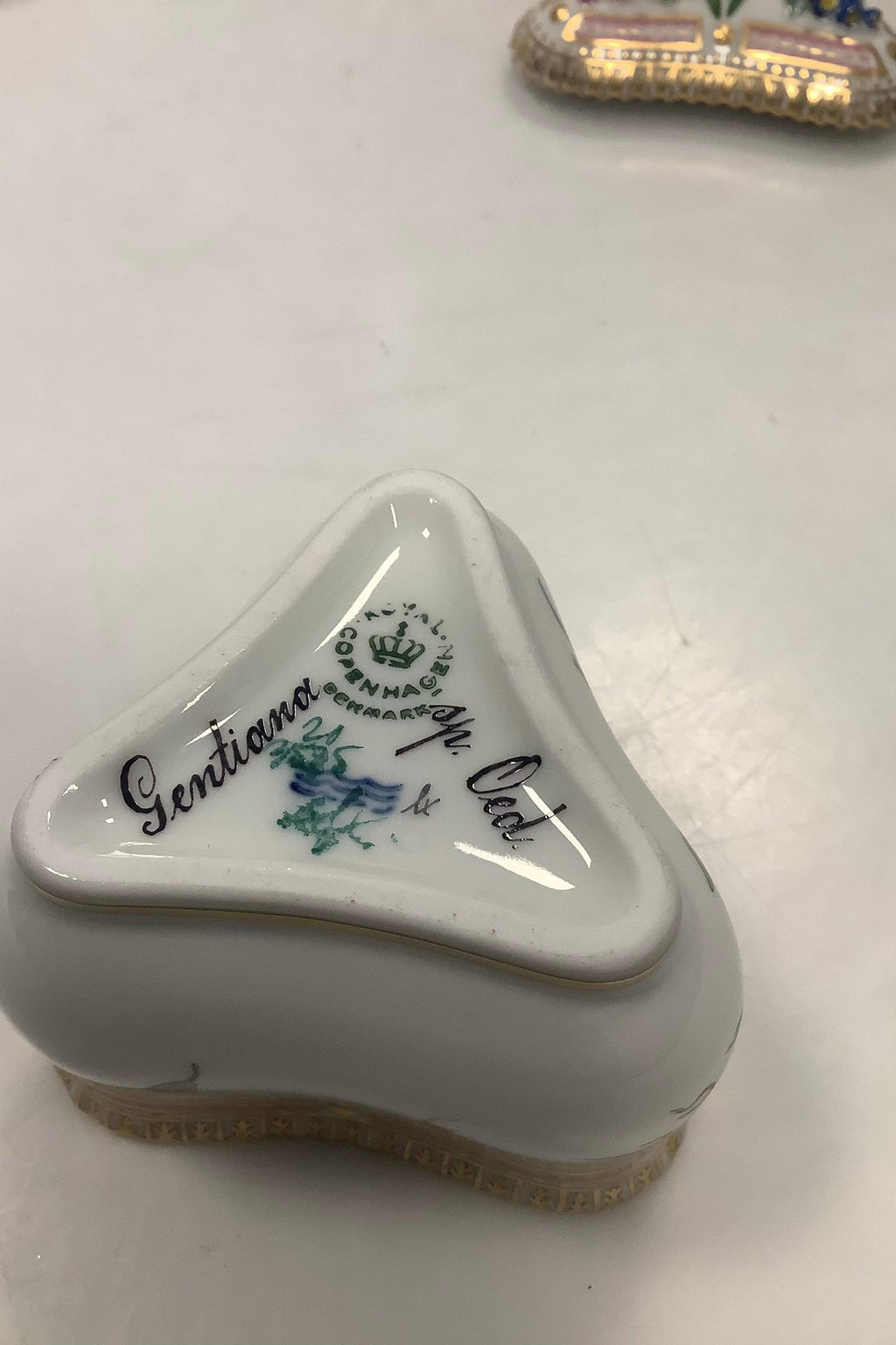 Royal Copenhagen Flora Danica 20/3575 + 20/3576 Trekantet Cremekop Latinsk Navn: "Geniana Sp. oed". Måler H 9 cm  Diam 10 cm