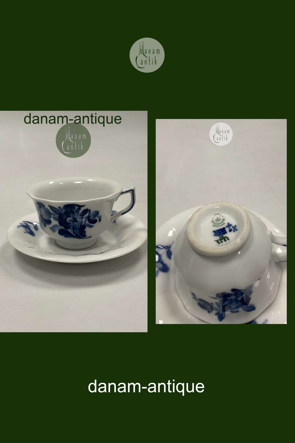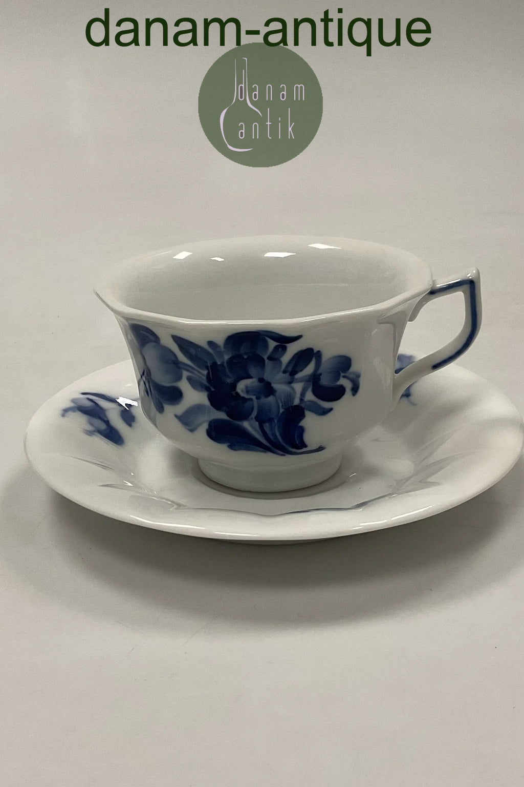 Royal Copenhagen Blå Blomst Kantet Tekop og Underkop No 8500. 18 cl. 6 cm x 9 cm