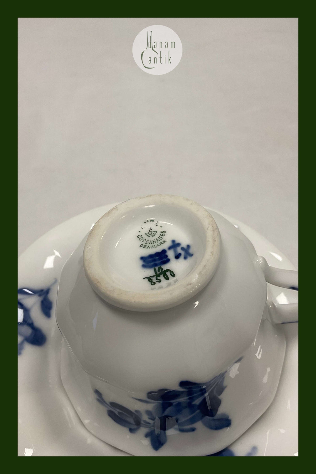 Royal Copenhagen Blå Blomst Kantet Tekop og Underkop No 8500