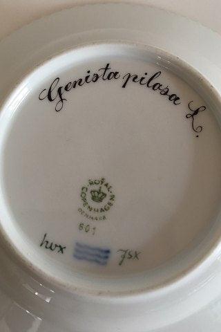 Kongelig Porcelæn Flora Danica Frugt tallerken 20/3590 nyt nummer 601. Blomsten er: Genista pilosa L. Måler 14,5cm, første sortering og i perfekt stand.