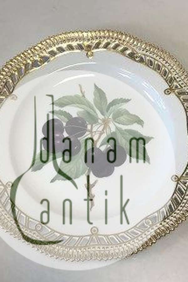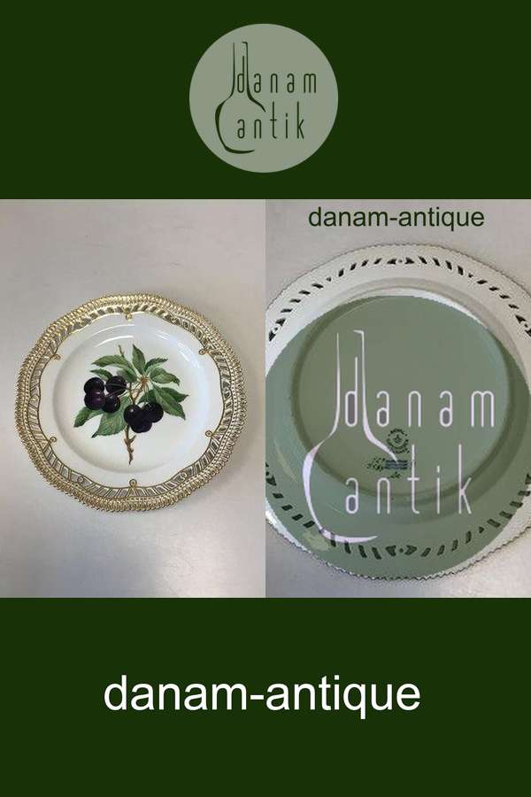 Royal Copenhagen Flora Danica Frugttallerken No 429/3554. Måler 22,7 cm. 1. Sortering. Med gennembrudt kant. Kirsebær. Fra 1961