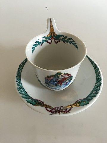 Royal Copenhagen Jingle Bells Morgenkop med Underkop. Kop måler 10 x 8.5 cm. I perfekt stand.