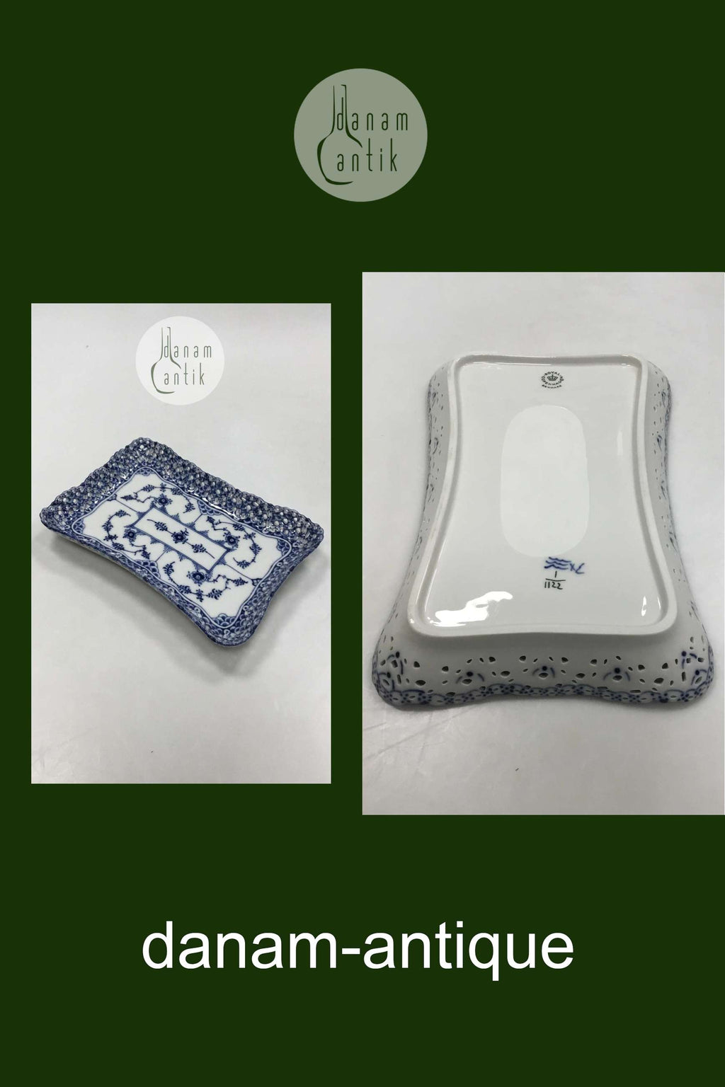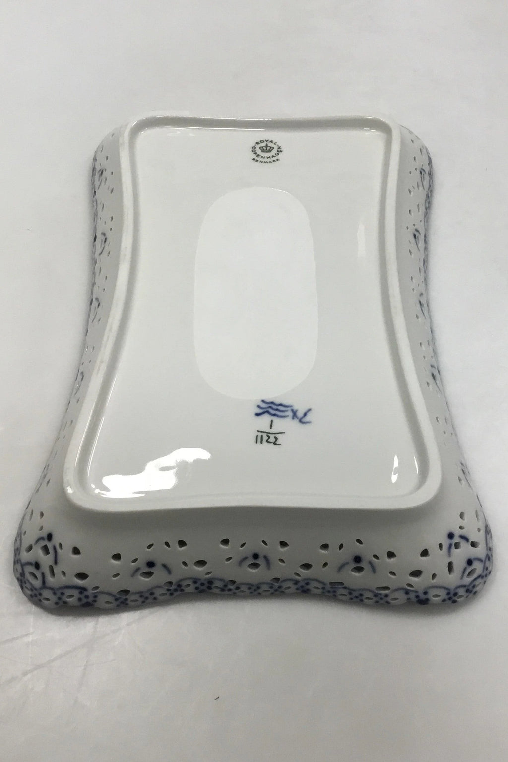 Royal Copenhagen Musselmalet Helblonde Rektangulær bakke No 1122. 1. sortering. Måler 23 cm x 16 cm ( 9 1/16 in. x 6 19/64 in. )
