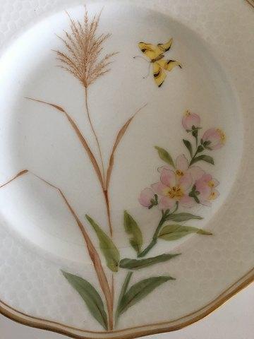 Royal Copenhagen Tallerken No 166/2031 Guldkant med Håndmalet Blomst og Sommerfugl