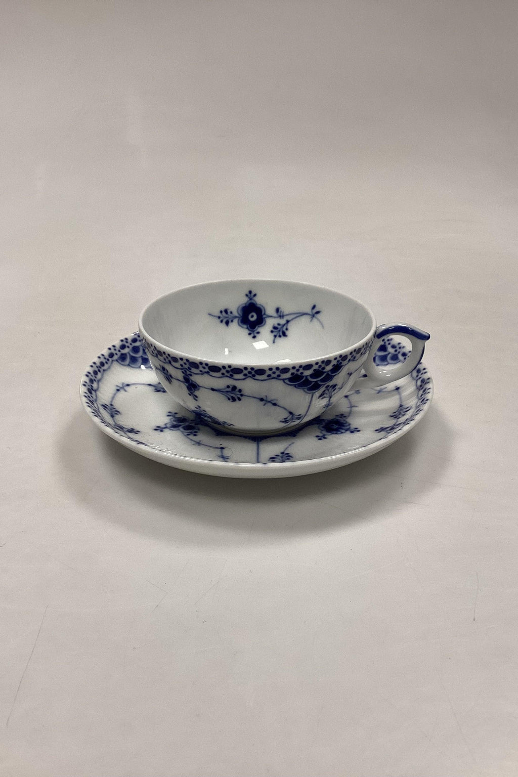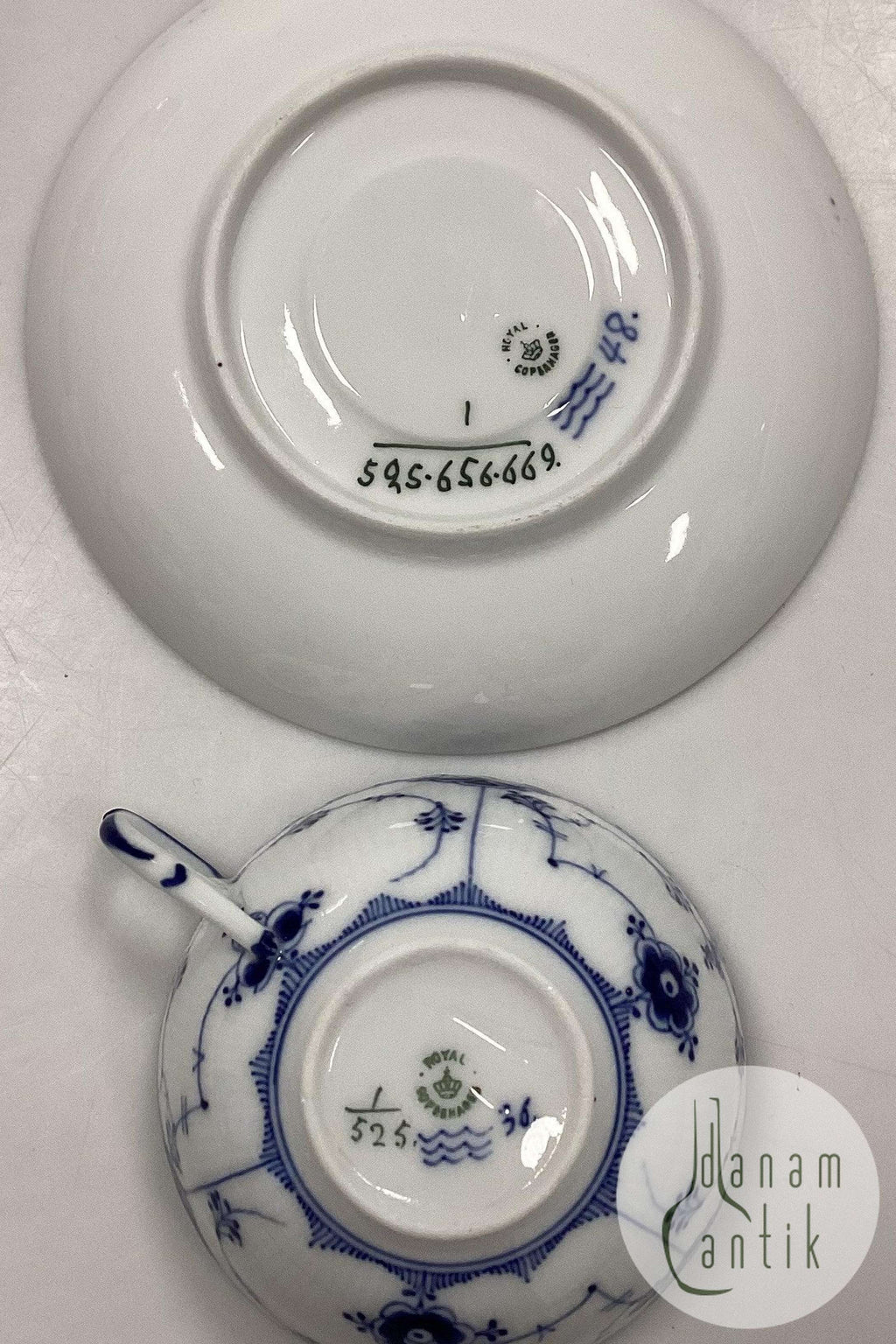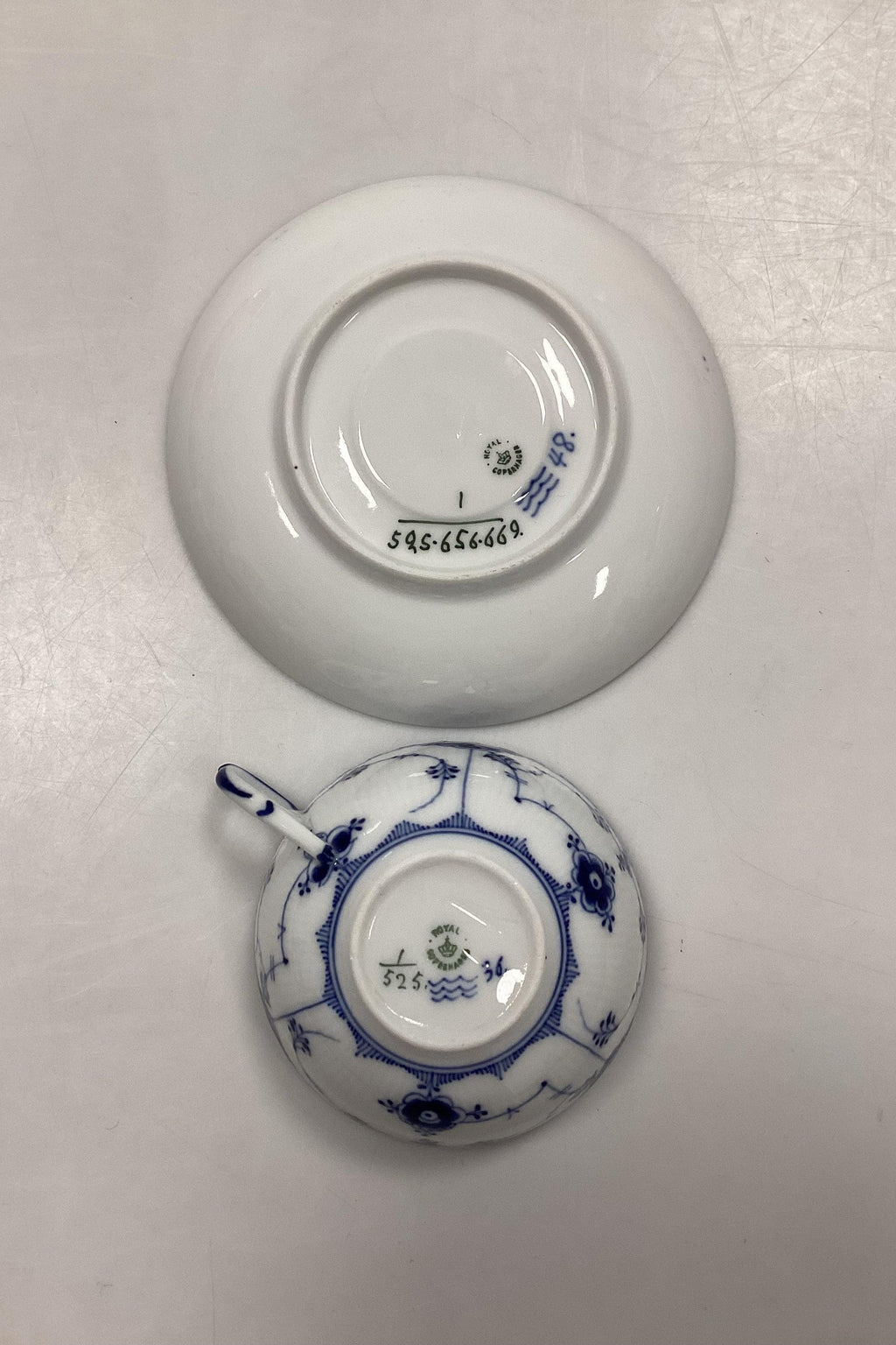 Royal Copenhagen Musselmalet Halvblonde Tekop med indvendig dekoration og Underkop No. 525