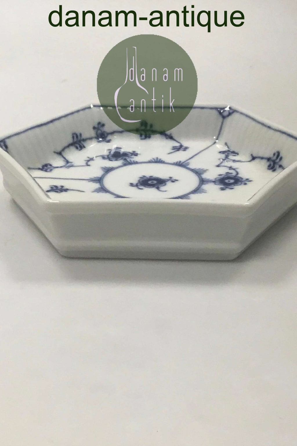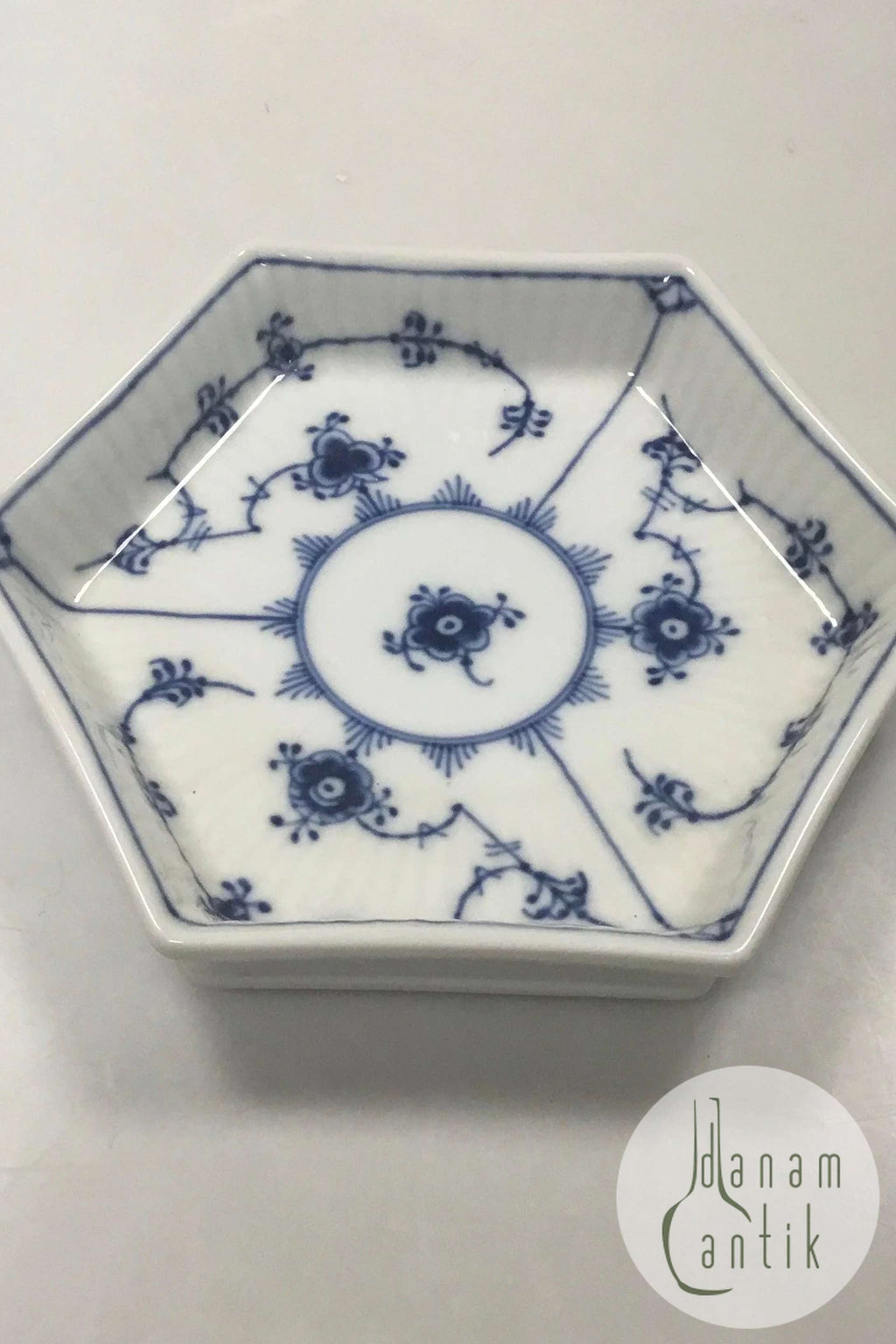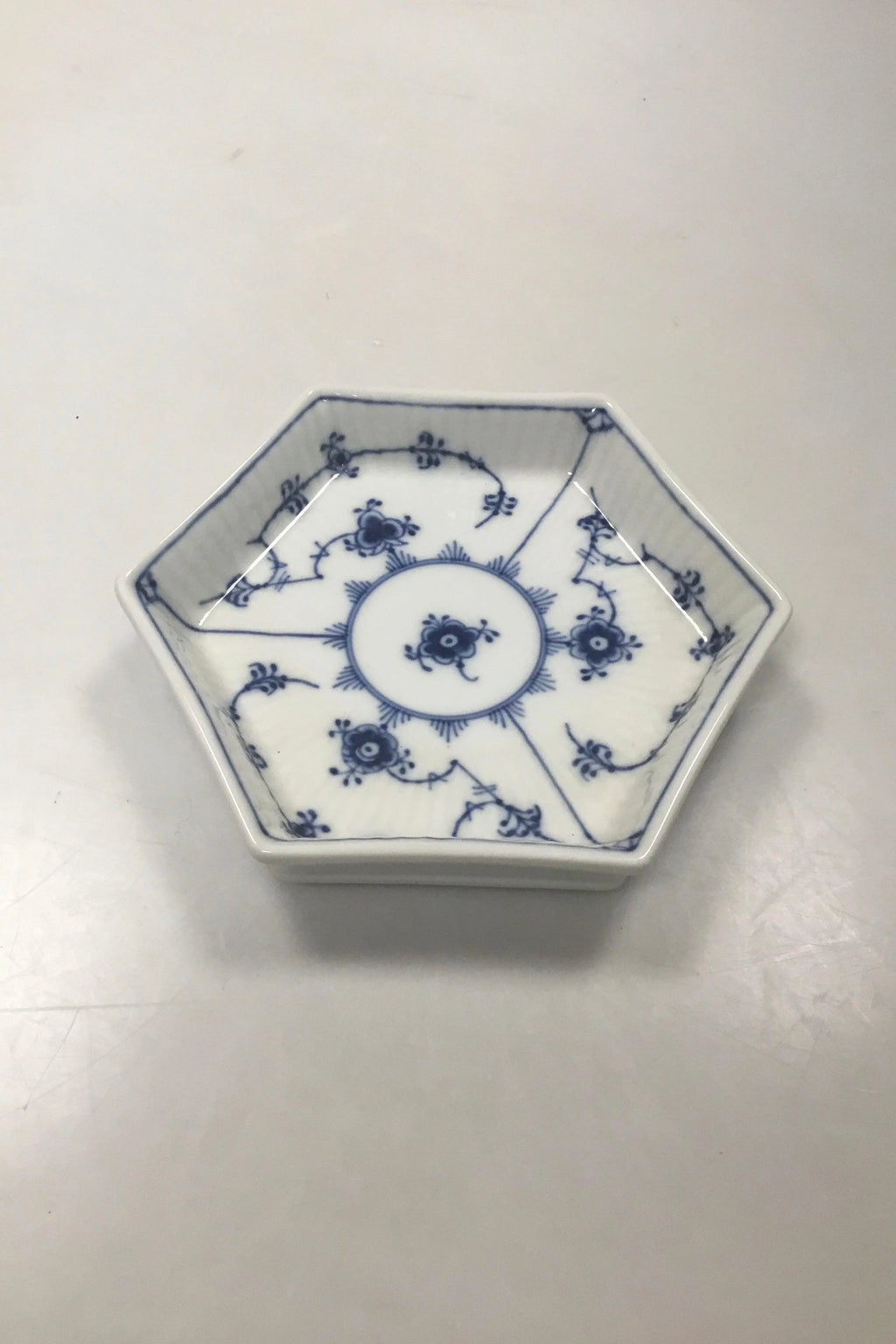 Royal Copenhagen Musselmalet Riflet sekskantet bakke No 2138. Måler 13,3 cm ( 5.24 in. )