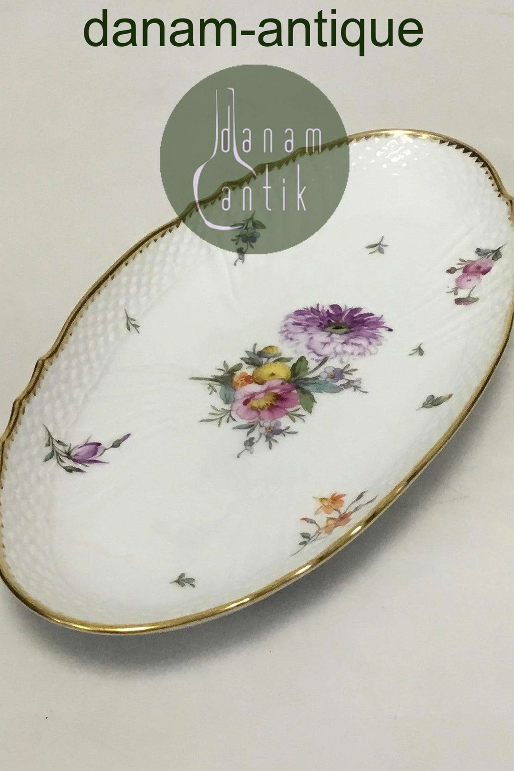 Royal Copenhagen Fuld Saksisk Blomst aflangt Fad No 1689