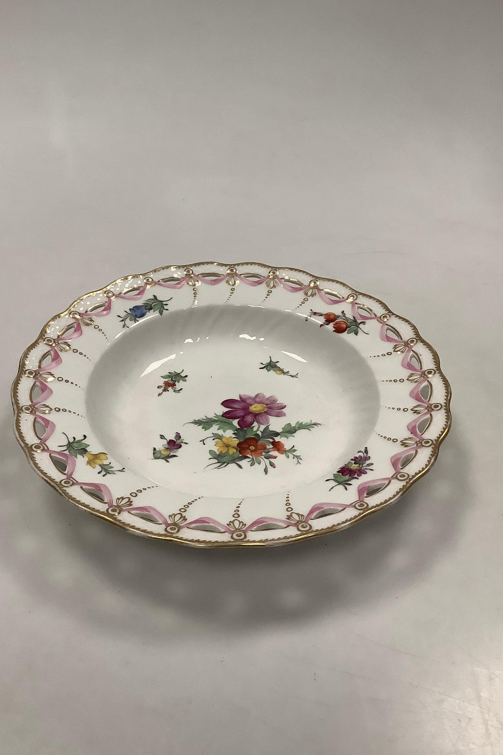 Royal Copenhagen Fuld Saksisk Blomst Gennembrudt dybtallerken Antik