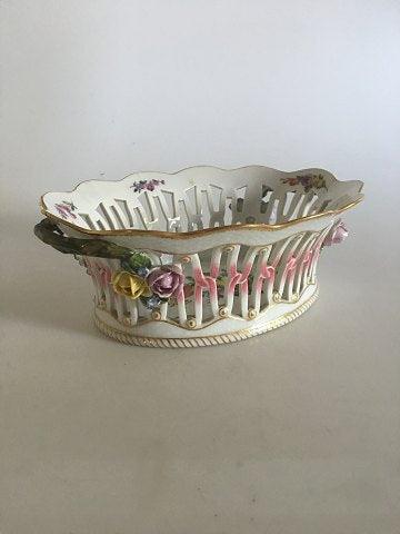 Royal Copenhagen Fuld Saksisk Blomst Gennembrudt Oval Skål No 1581