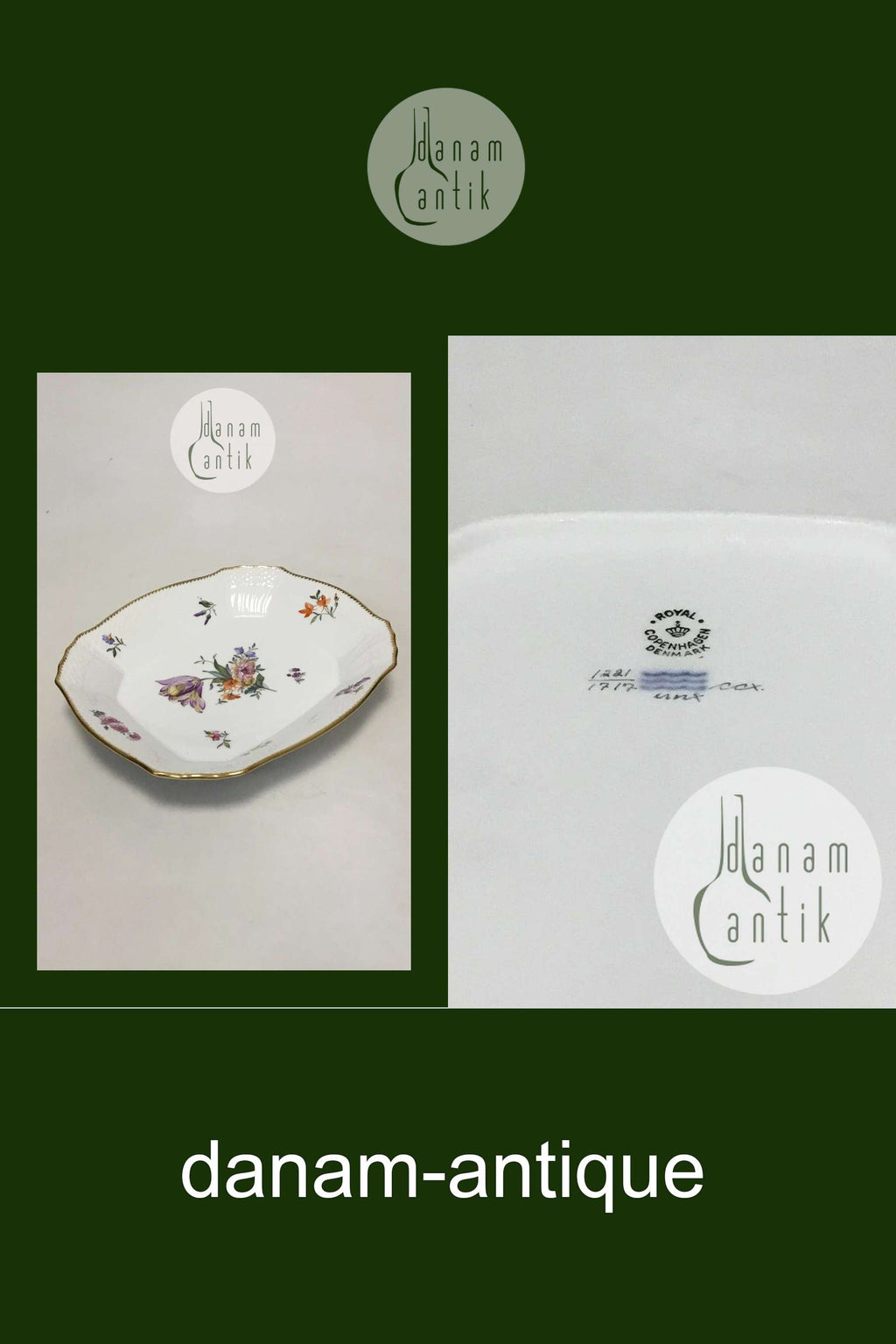Royal Copenhagen Fuld Saksisk Blomst rektangulært fad No 1717