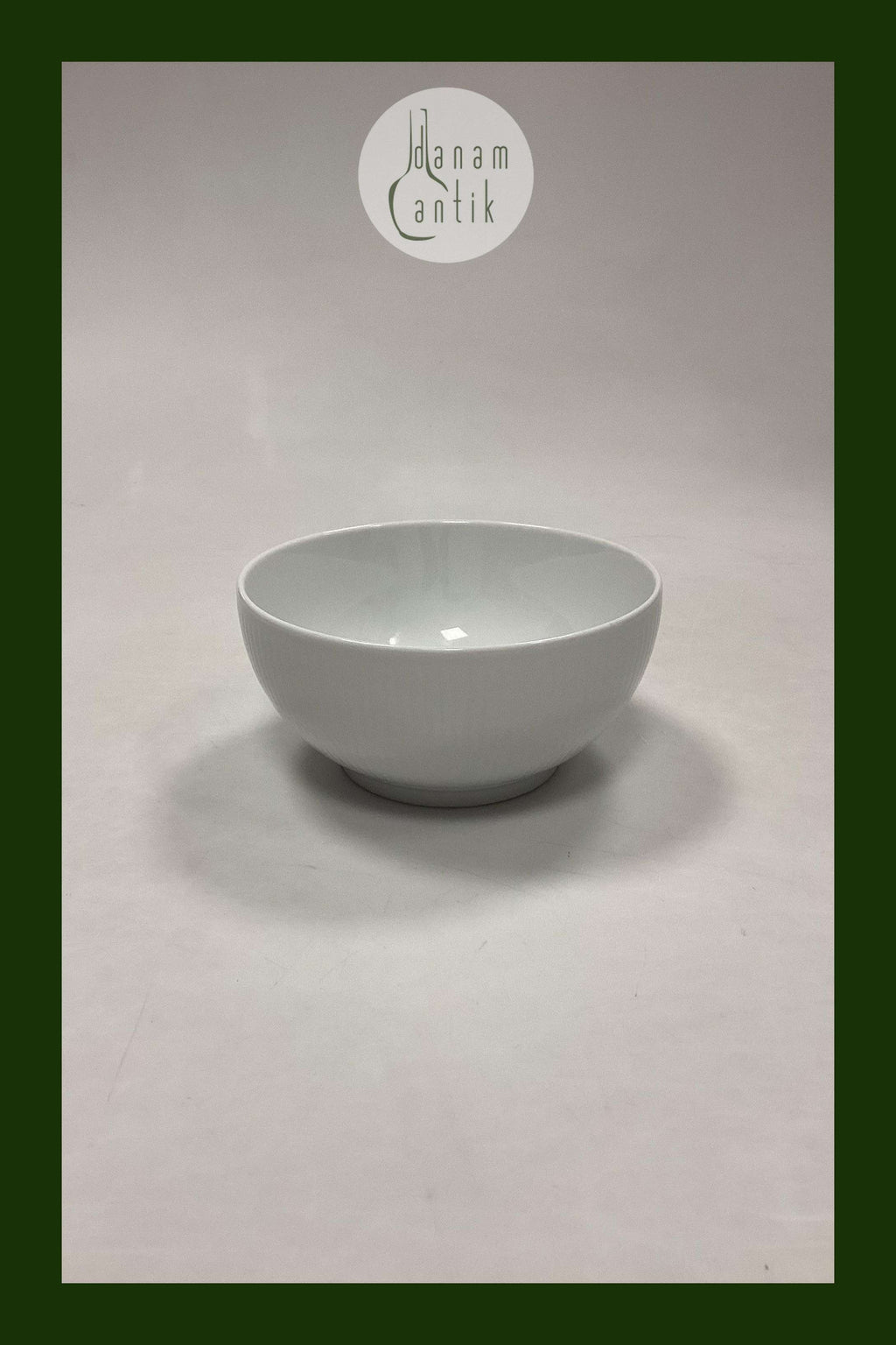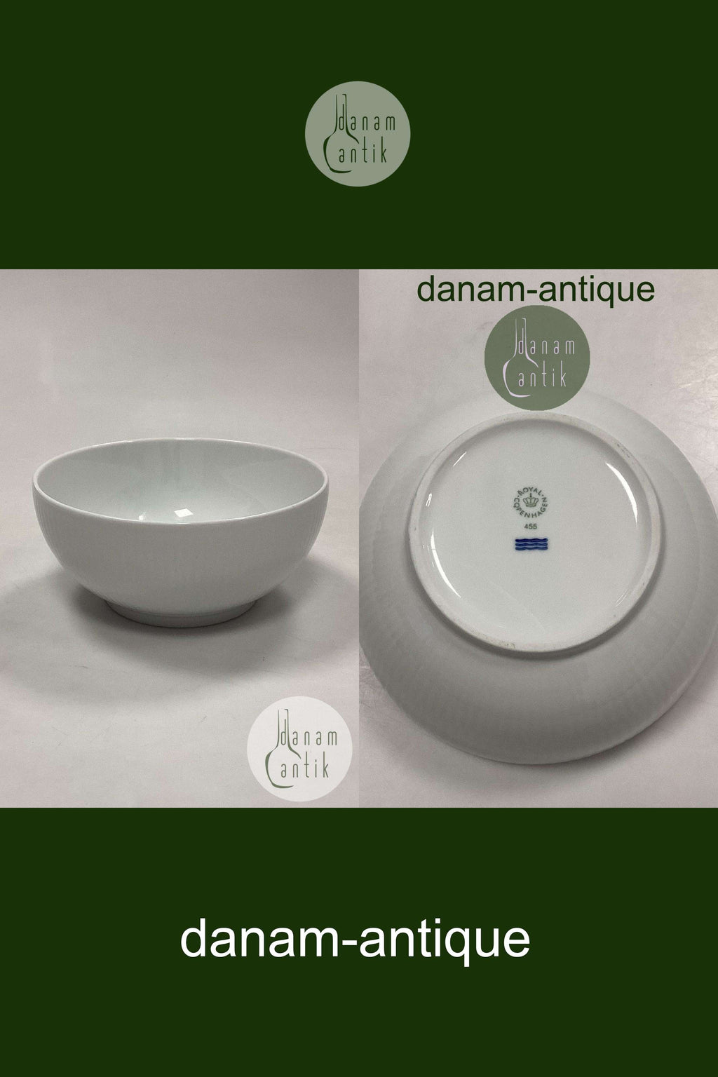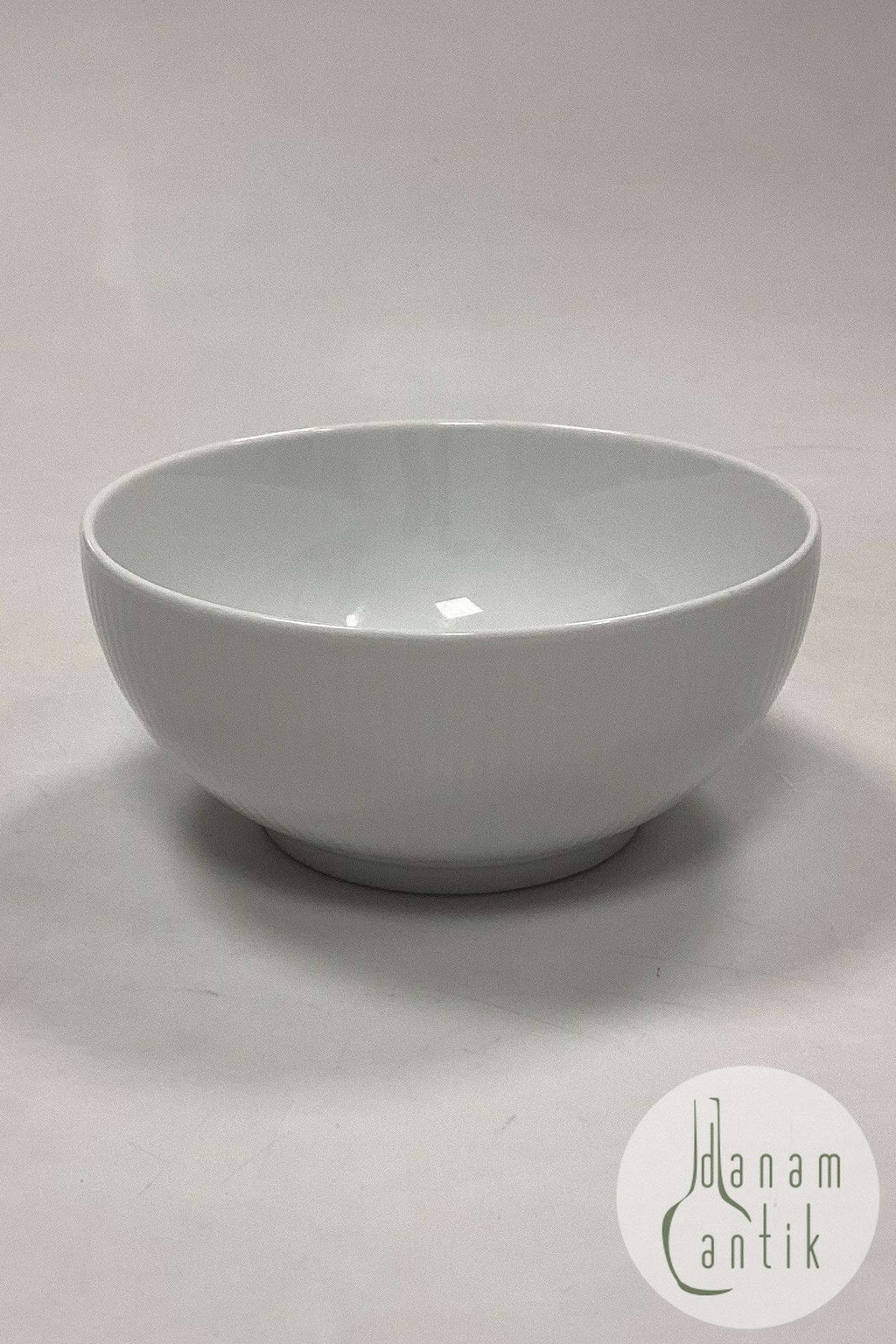 Royal Copenhagen Hvid Riflet Skål No. 455. Måler 7 cm x 15 cm / 2.75 in. x 5.90 in.
