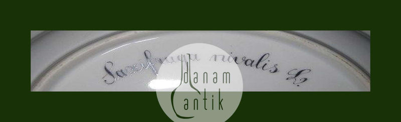 Kgl. Porcelæn Flora Danica Dyb Tallerken 20/3546 nyt nummer 604. Måler 22,3cm. Blomsten er: Saxifraga Nivalis L. Første sortering og i perfekt stand.