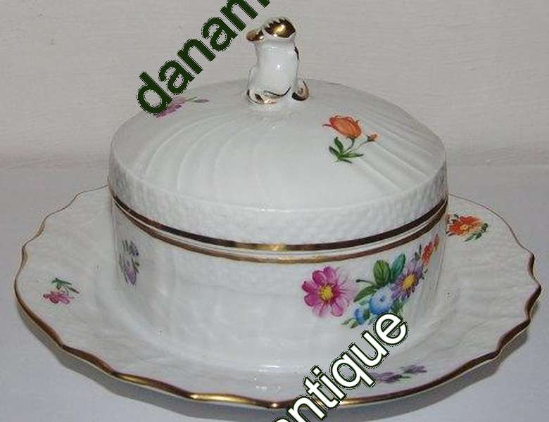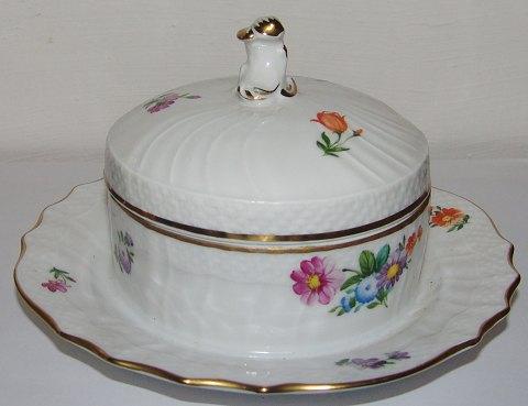 Kgl. Porcelæn Let Saksisk Blomst Smørskål med underfad No 1503