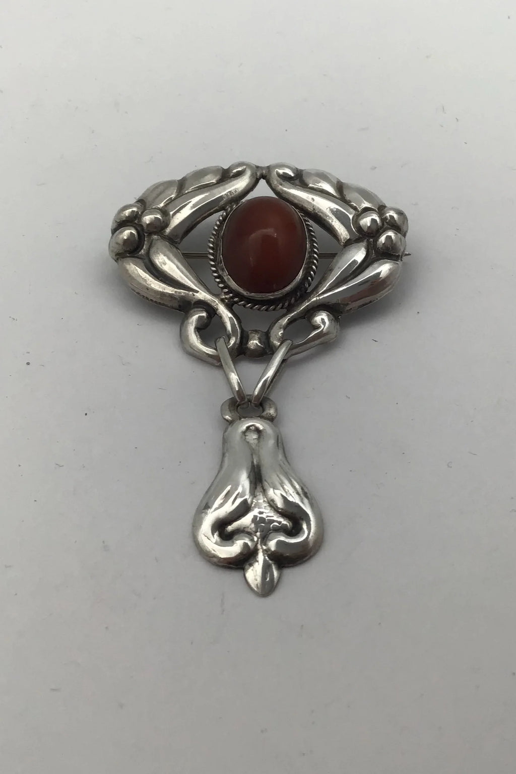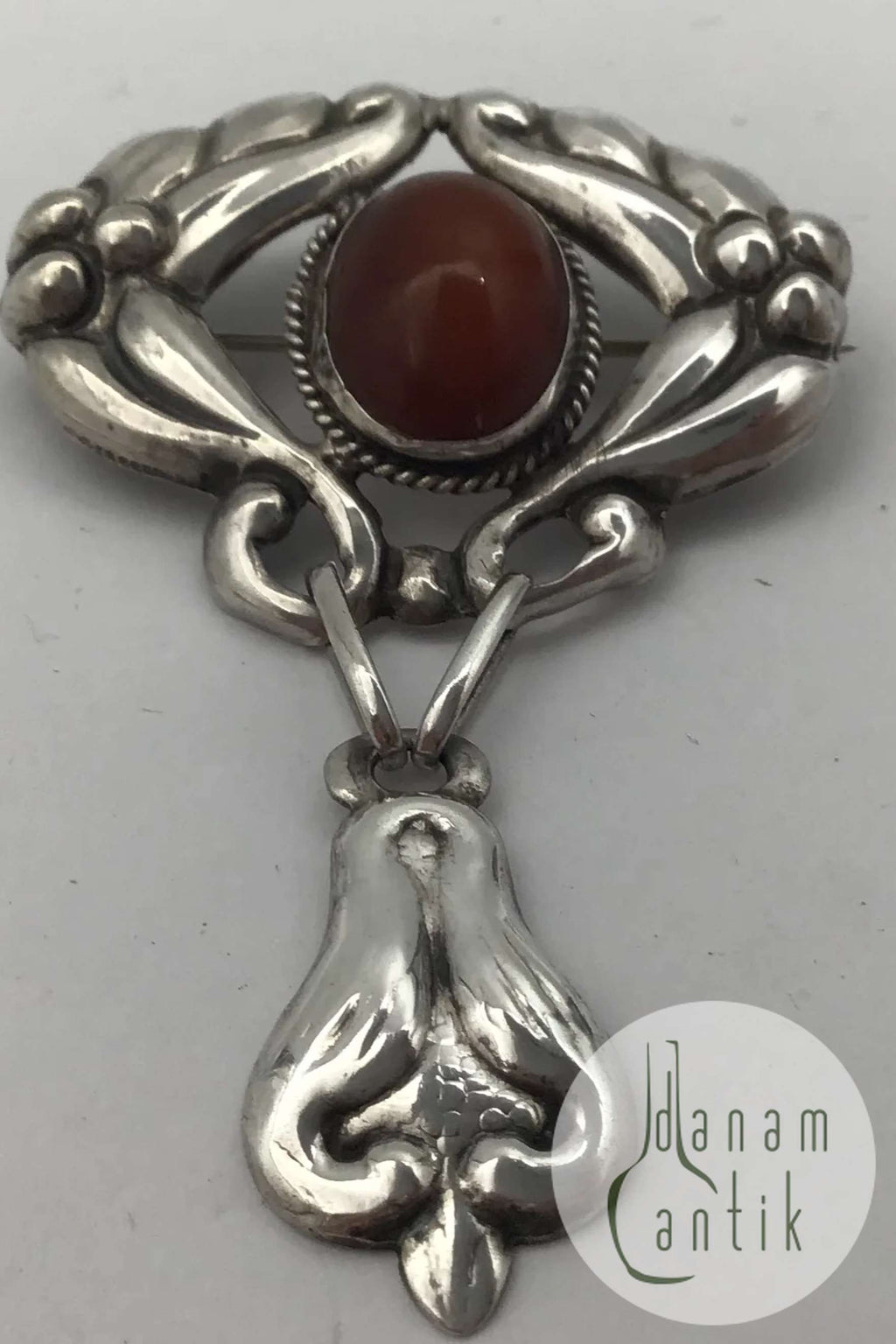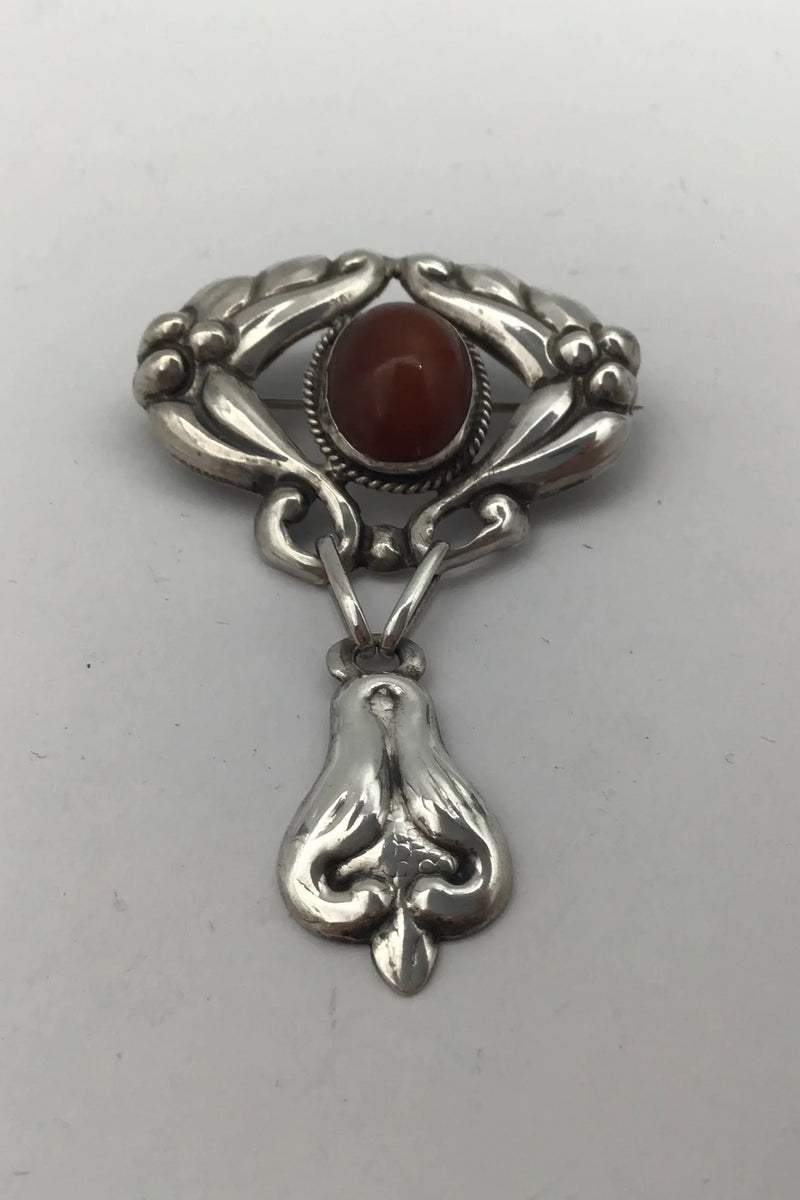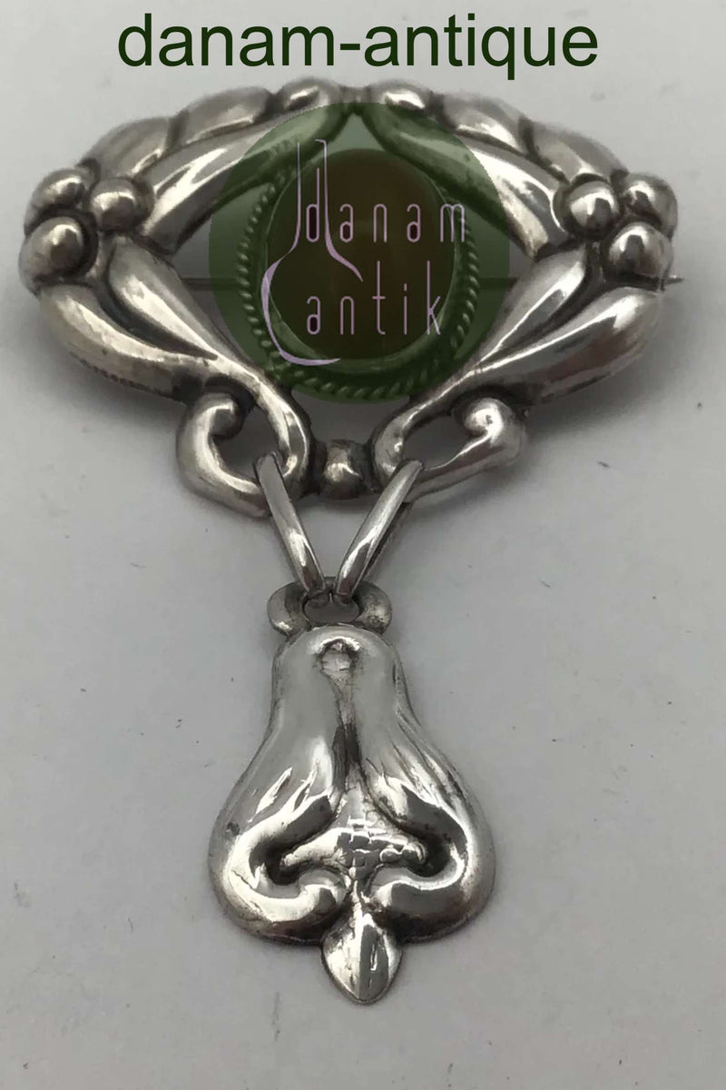 Dansk Sølv Skønvirke Art Nouveau Broche med Rav Måler 7,2 cm x 4.5 cm (2.83 inch x 1.77 inch) Vægt 8.4 gr (0.30 oz)