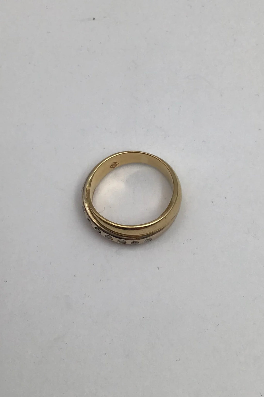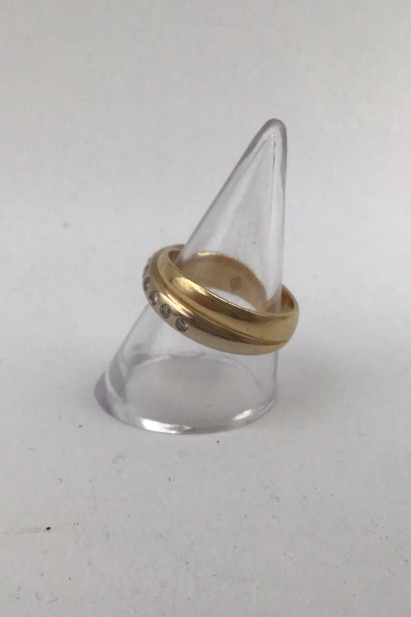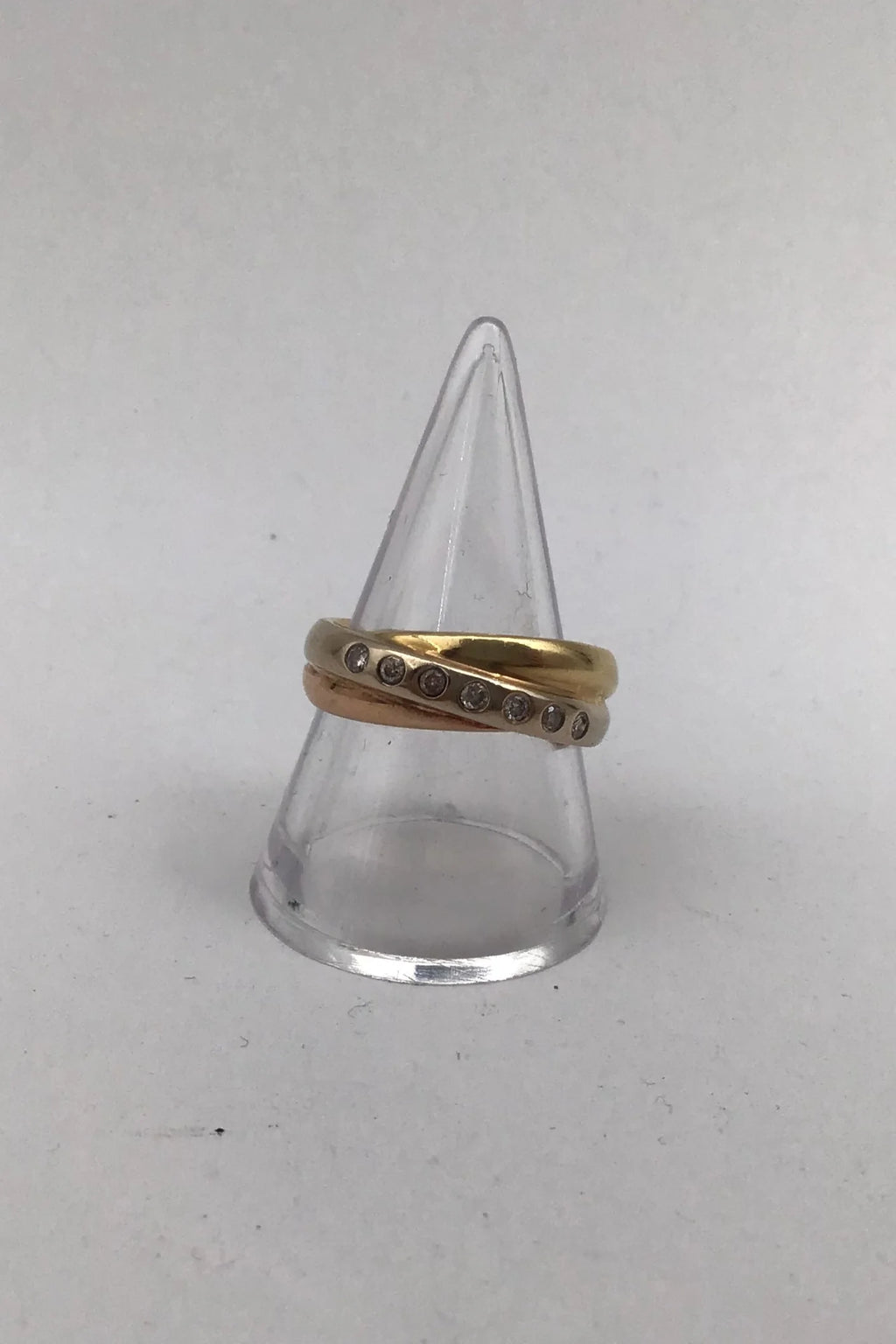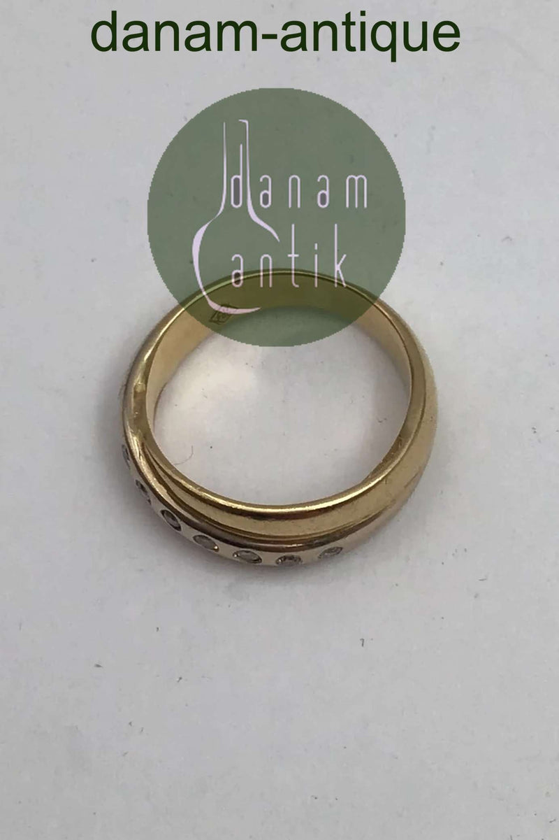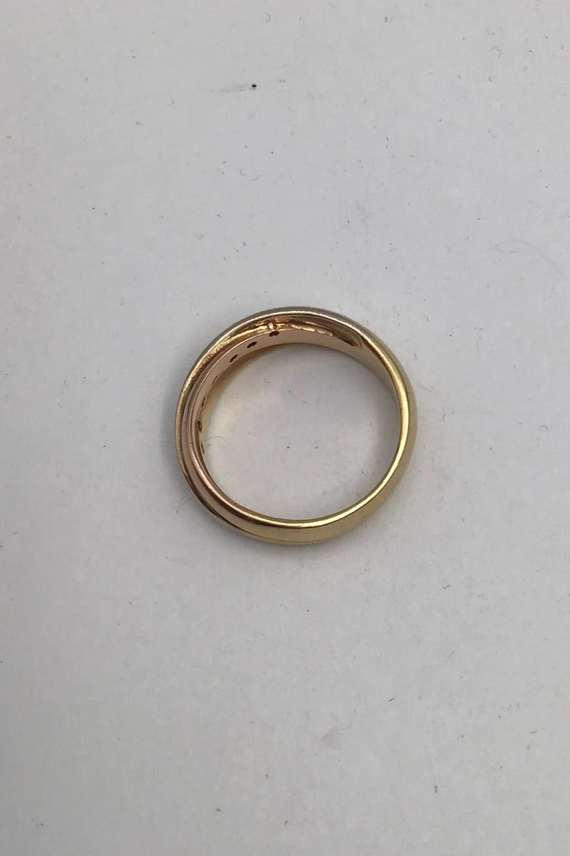Tre tonet 18K Guld Ring med Brillanter (7 x 0,02) Måler Ring Str.55 (US 7 1/4) Vægt 7.4 gr. (0.26 oz)