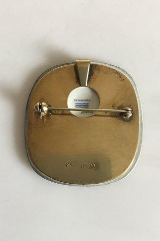 Royal Copenhagen Flora Broche / Vedhæng i Sterling Sølv og Porcelæn. Måler 4,5 x 4,9 cm. Lille afslag på kant