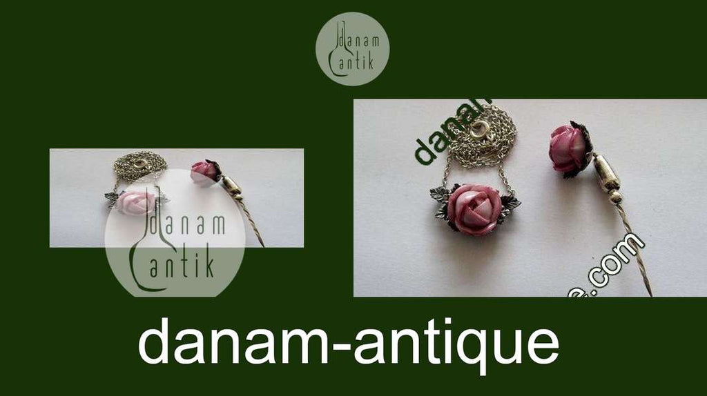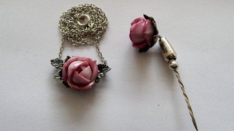 Kgl. Porcelæn vedhæng og nål med Sterling Sølv. Mærket med RC mærke, 925 og RCP. I perfekt stand. Disse er lyserøde. Se også den i hvid vi har.