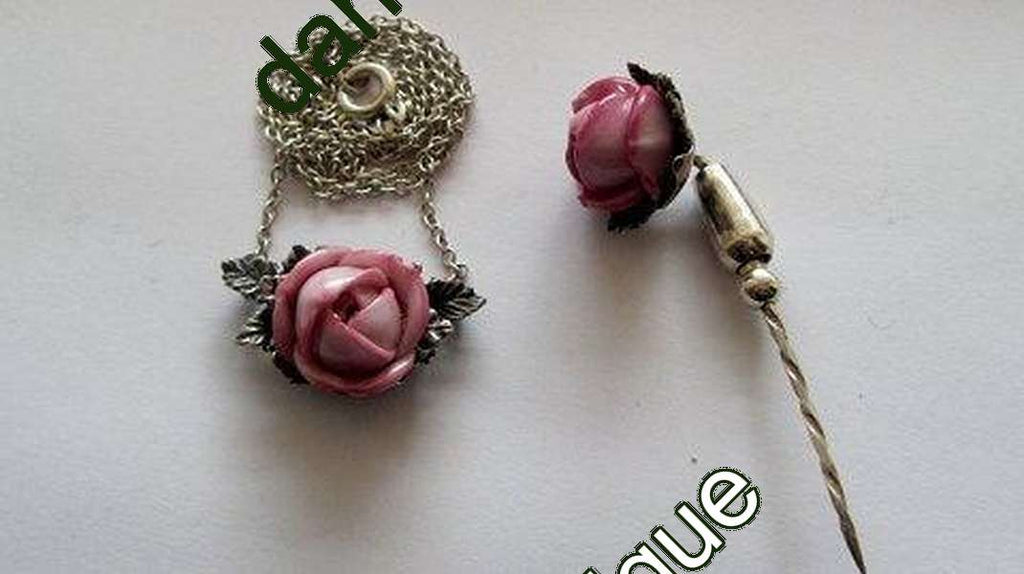 Kgl. Porcelæn vedhæng og nål med Sterling Sølv