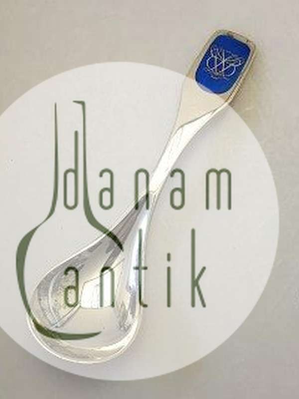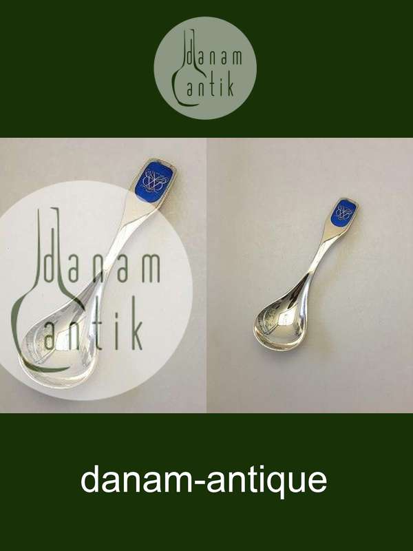 Dyb Barneske i Sterling Sølv med monogram og blå emalje W.S. Sørensen