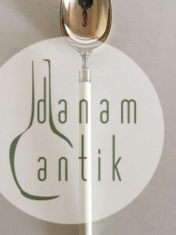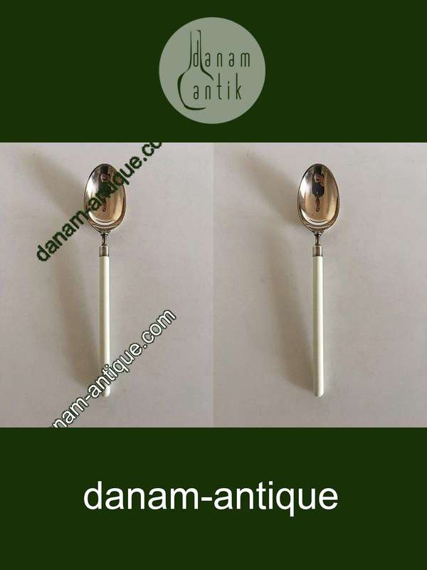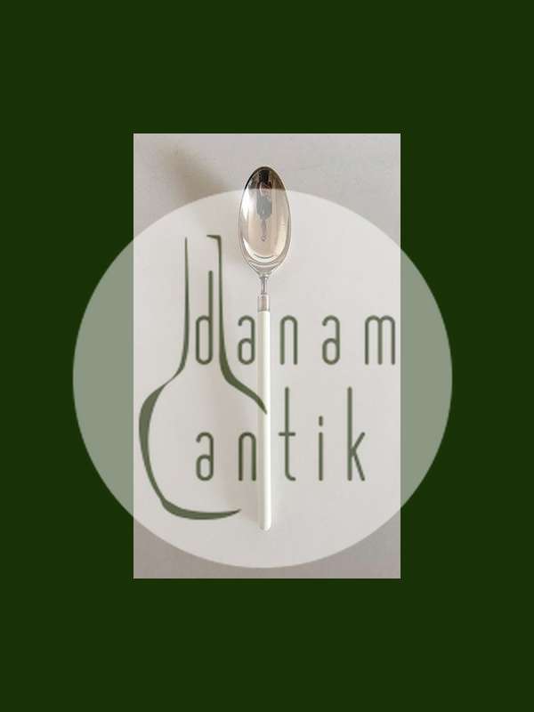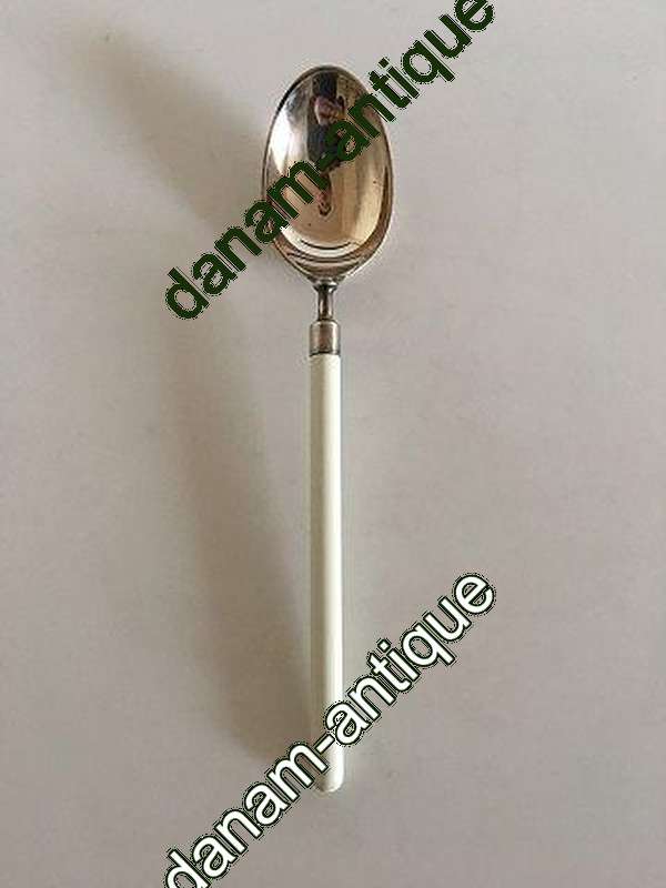 Hans Hansen Amalie Sølv Spiseske med Hvidt Emalje Håndtag. Måler 20 cm (7.87 inch)