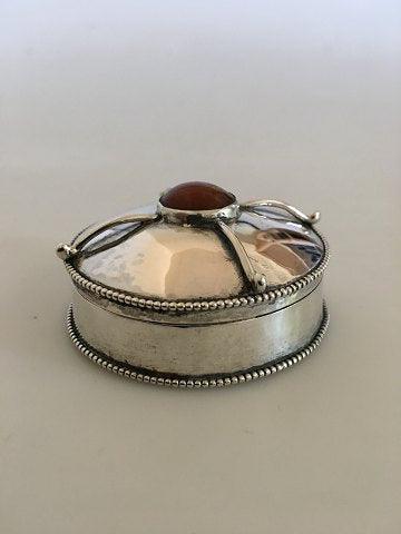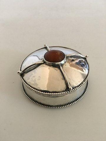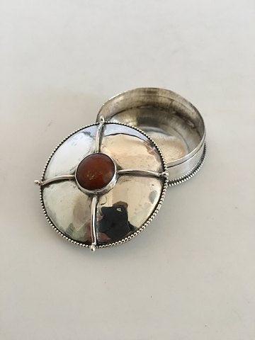 Christian Fjerdingstad Pilleæske i 826 Sølv Prydet med en Ravsten.