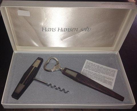 Hans Hansen Sterling Sølv og Træ Proptrækker og oplukker