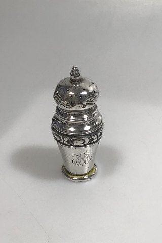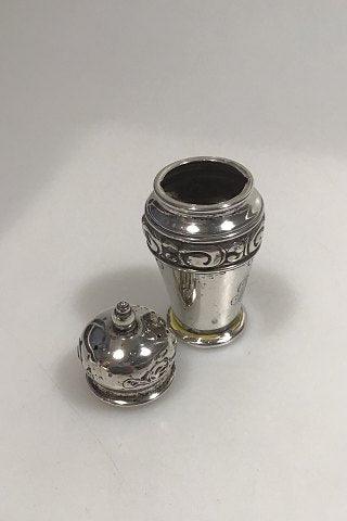 J Holm Sølv Salt/Strø bøsse Måler H 10 cm Vægt 42 gr (Gravering/Brugsspor)
