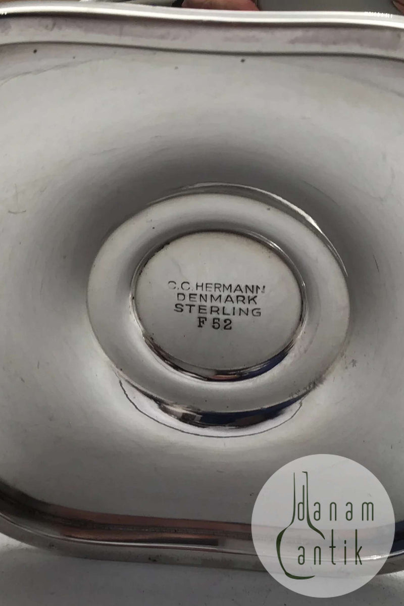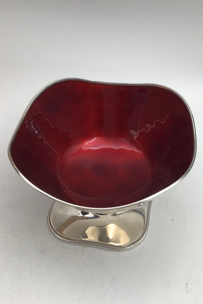 C. C. Hermann Sterling Sølv Skål på fod F52 (Rød Emalje)
