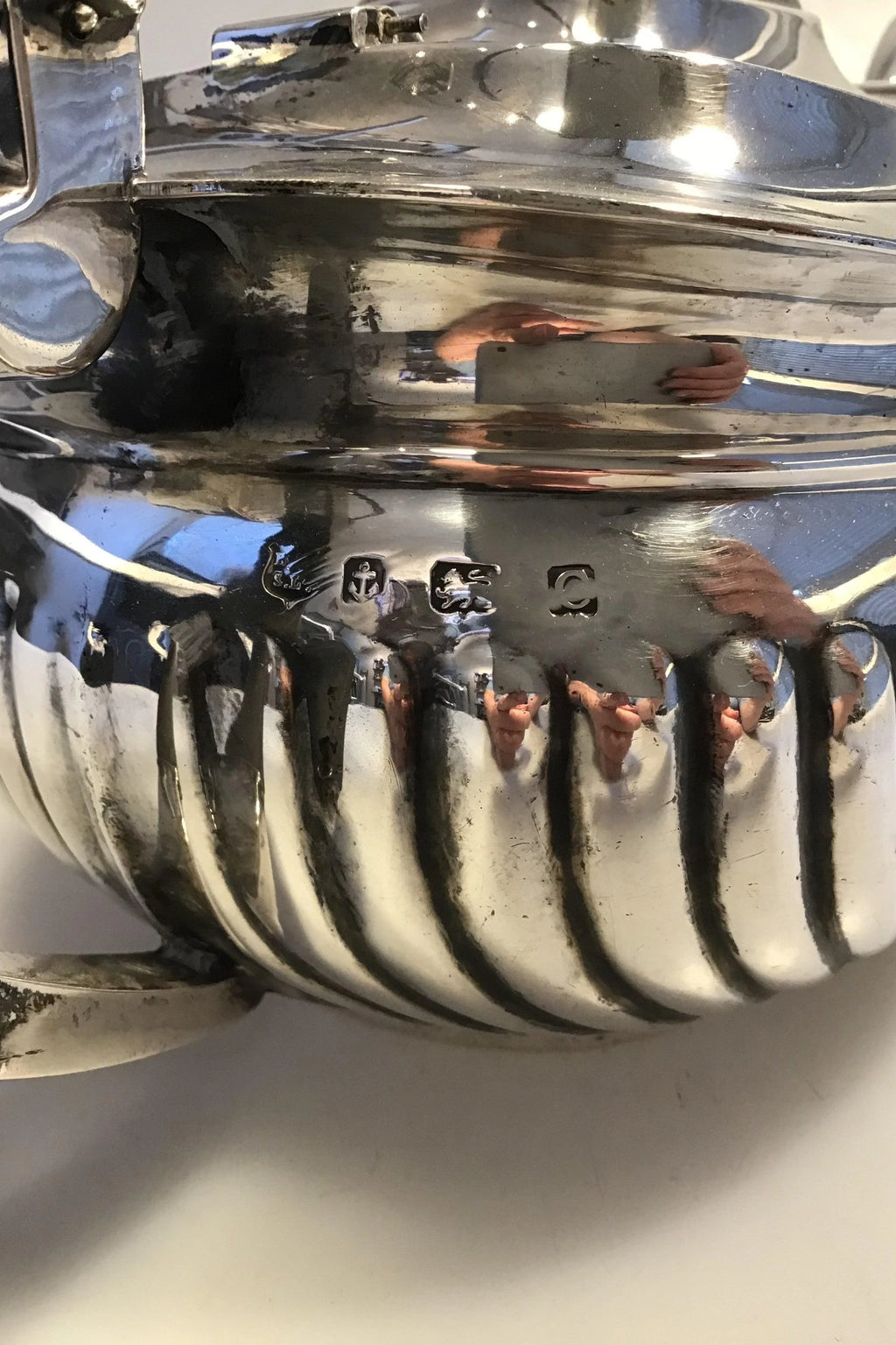 Barker Brothers Ltd Birmingham Sterling Sølv Thekande 1927 Måler H 13 cm(5 1/8in) L 28 cm(11 1/32 in) B 13 cm(5 1/8 in) Vægt 607 gr/21.44 oz(Brugsspor)