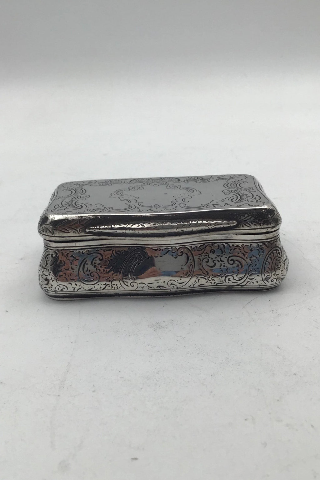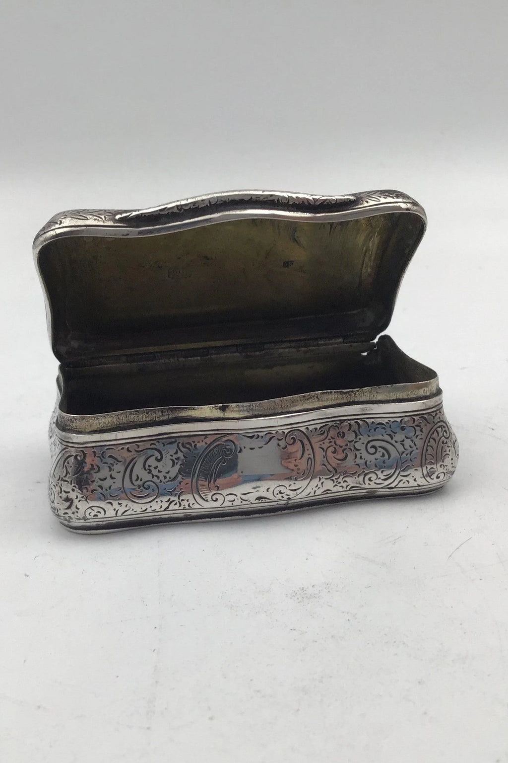 Sterling? Sølv Snustobak-æske Måler 8.2 cm x 4.8 cm x 2.6 cm (3.22 inch x 1.88 inch x 1.02 inch) Vægt 82.9 gr (2.92 oz) (Brugsspor)