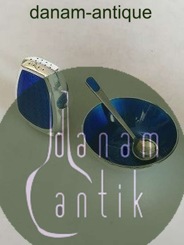Anton Michelsen Salt & Pebersæt i Sterling Sølv med blå emalje