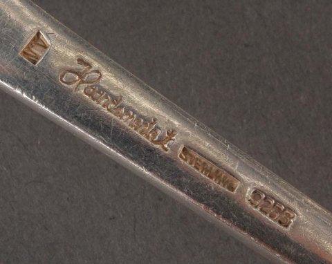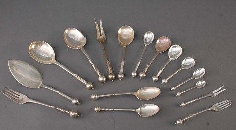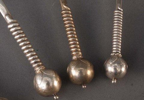 Georg Gleerup. Sølvbestik af Stering sølv, hammerslået laf, snoet sølvtråd