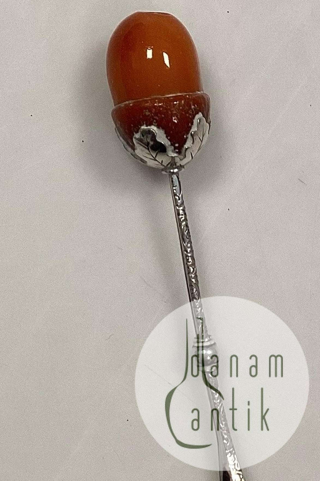 Zigarettenspitze in Silber mit bernsteinfarbener Perle