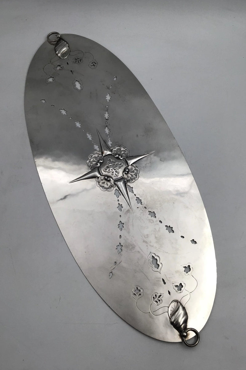 Georg Jensen Sølv Ornamental Fiskerist No 206 (1919) Måler 48 cm x 20.5 cm (18.89 inch x 8.07 inch) Vægt 670 gr / 23.64 oz