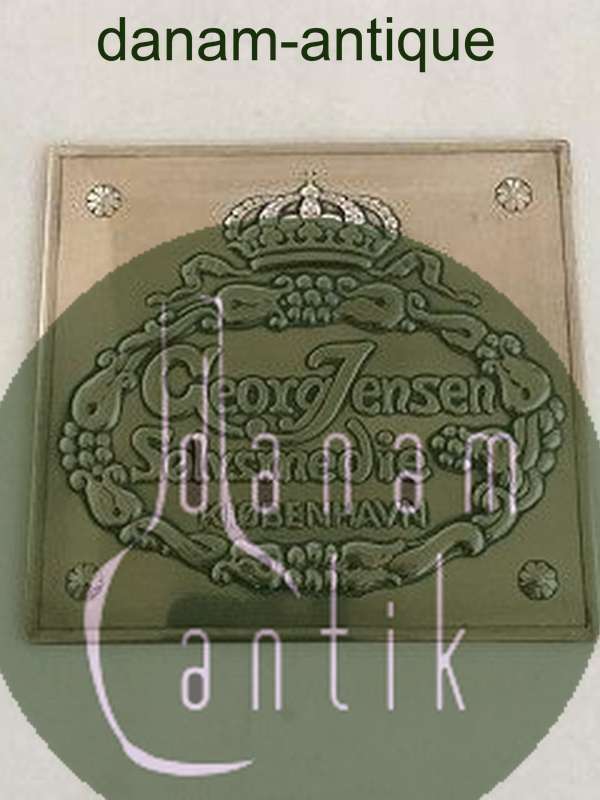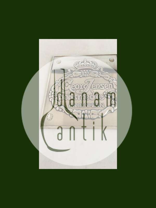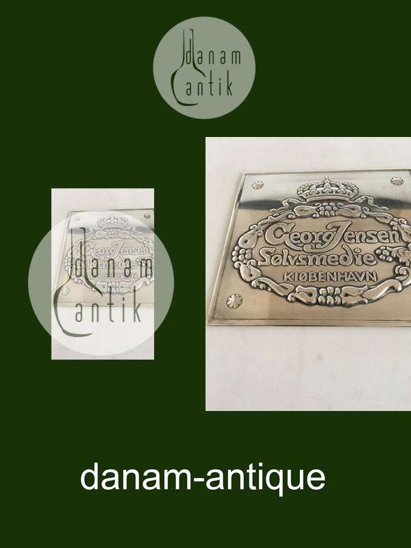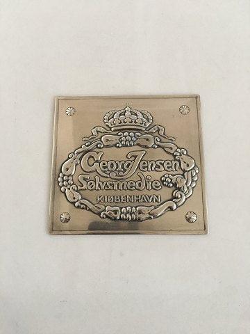Georg Jensen Händler Werbeschild aus Sterlingsilber. Es misst 12,5cm x 11,5cm und ist in gutem Zustand.