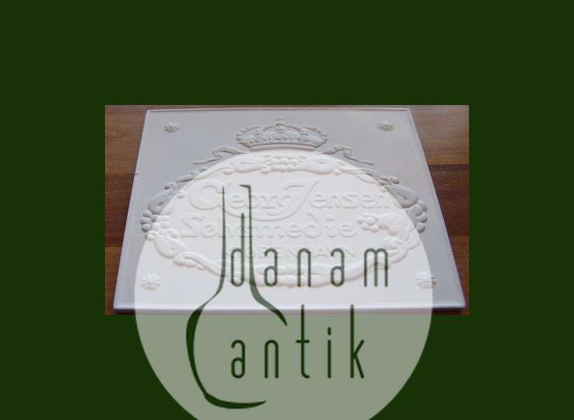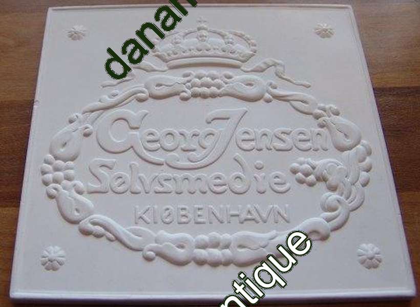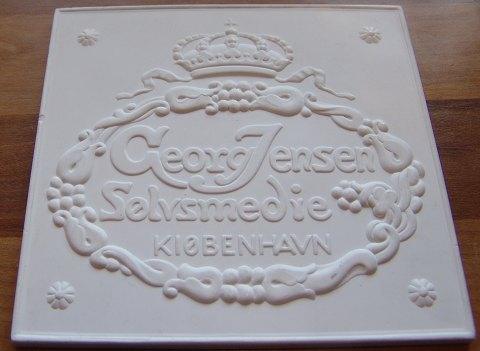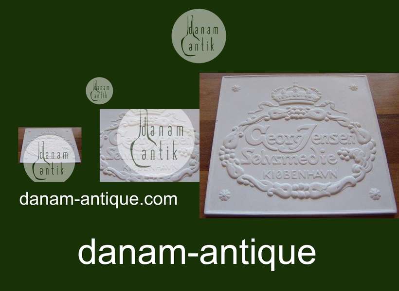 Georg Jensen Händler Zeichen. Maße 12,3cm x 11,5cm. Hergestellt aus Gips oder Biskuit, bin mir nicht ganz sicher. Wenn es Gips ist, dann ist es SEHR harter Gips.