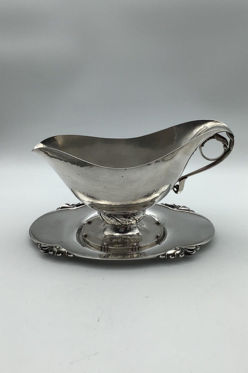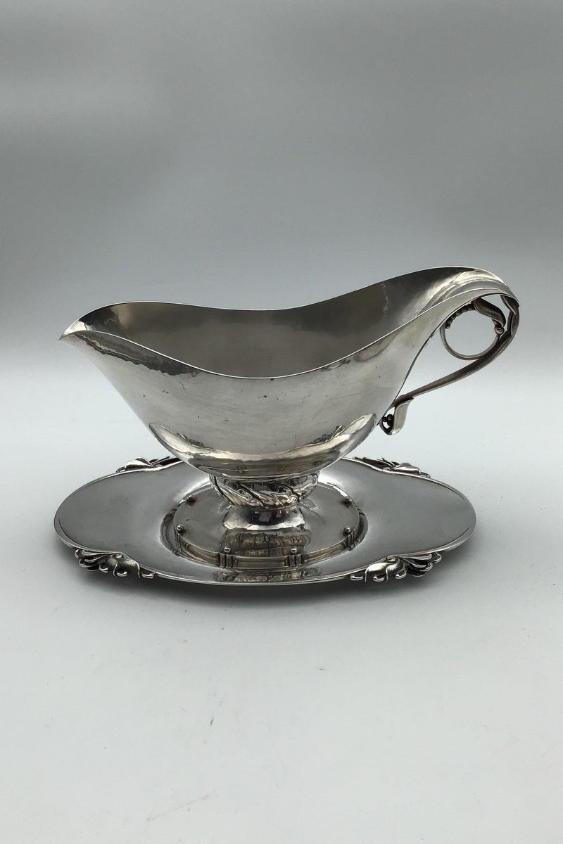 Georg Jensen Sterling Silber Soßenschüssel Nr. 177 und Untertasse Nr. 177 B. Maße Krug 12,7 cm x 20,6 cm x 9,5 cm (5 Zoll x 8,11 Zoll x 3,74 Zoll) Schüssel 20,5 cm x 12,8 cm (8,07 Zoll x 5,03 Zoll) Gesamtgewicht 635 gr (22,40 oz)