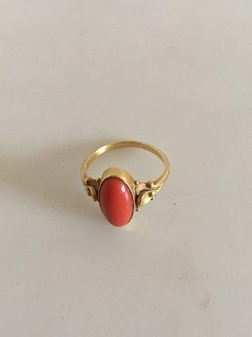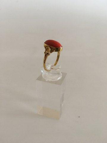 Georg Jensen 18K Gold Ring Nr. 243 mit Korallenstein. Größe 55. (US 7 ½). Wiegt weniger als 5 Gramm. Von 1932-1944.