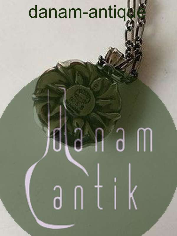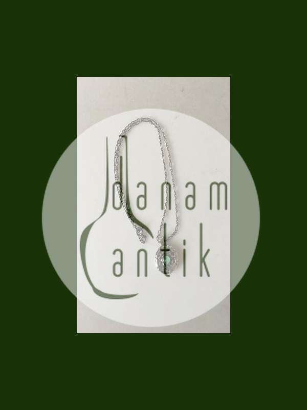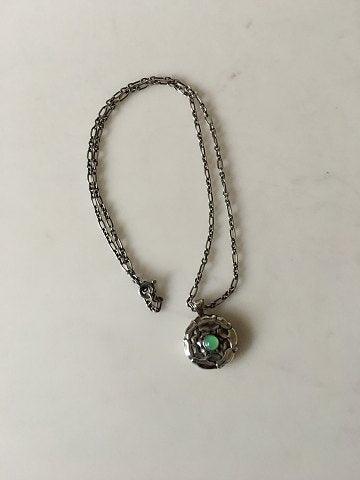 Georg Jensen Sterling Silber Halskette mit hellgrünem Stein. Der Anhänger misst 2 cm Ø. Die Kette ist 44 cm lang. Wiegt 15,5 Gramm. Produziert nach 1945.