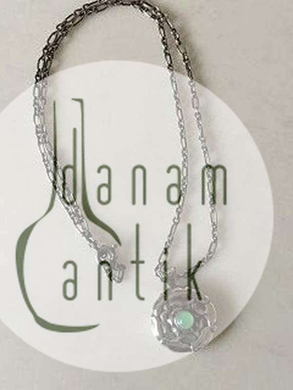 Georg Jensen Sterling Silber Halskette mit hellgrünem Stein.
