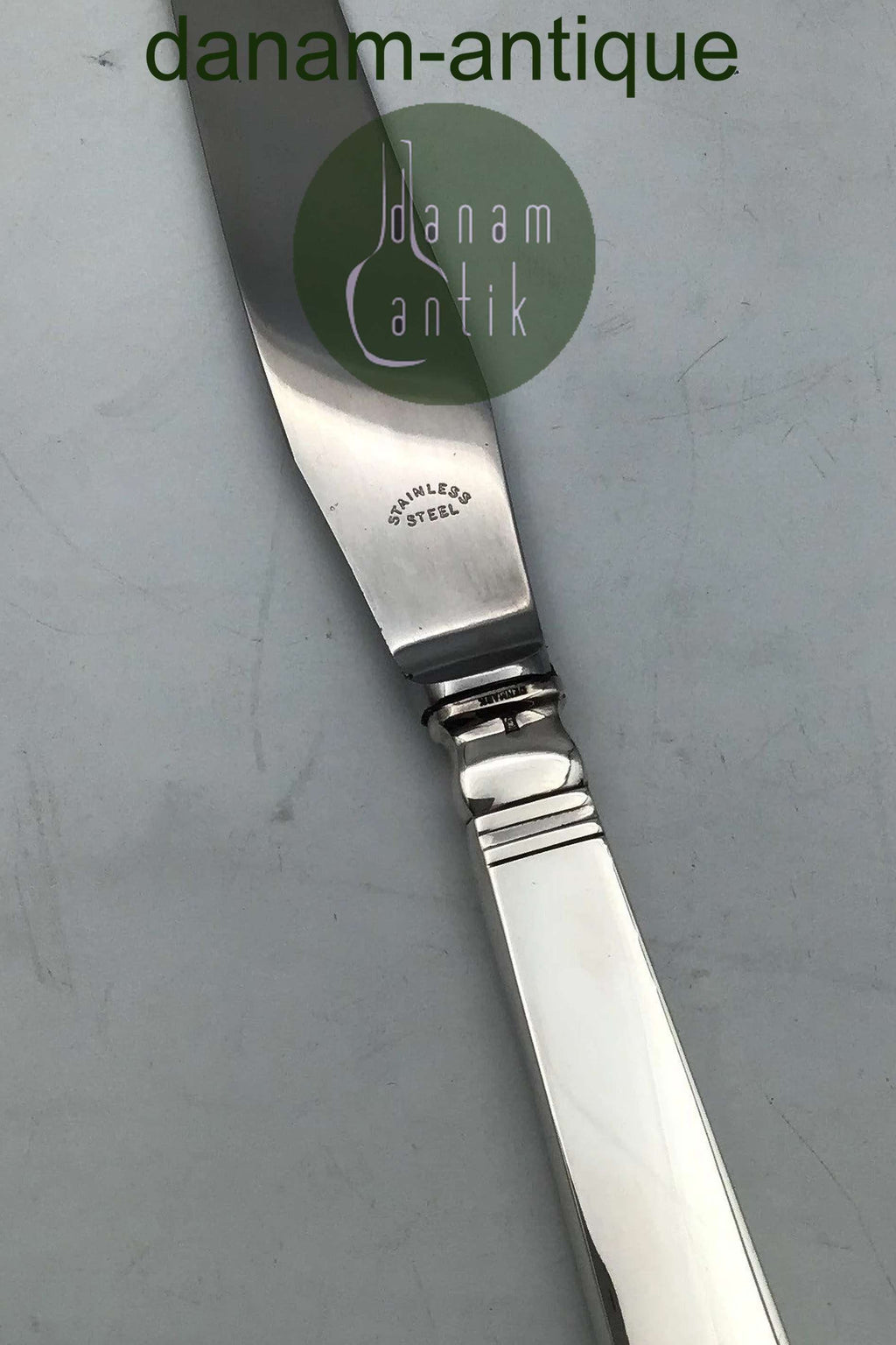 Georg Jensen Sterling Silber Block Tafelmesser Nr. 003 Maßnahmen 24 cm / 9,44 Zoll