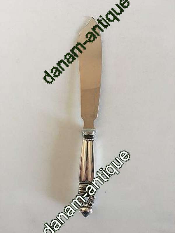 Georg Jensen King Layer Cake No 196 mit Old Fashioned Leaf. Sterling Silber und Edelstahl. Maße 27,1 cm.