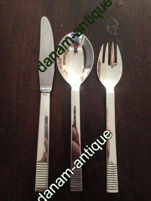 Georg Jensen Relief Sterling Silber Kinderbesteck Messer, Löffel und Gabel