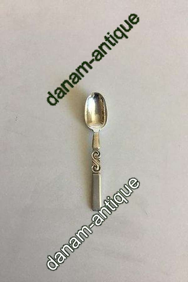 Entworfen von Johan Rohde (1856 - 1935). Johan Rohde war ein Grafiker, Maler, Architekt, Designer und Kritiker. In den 1880er Jahren war Rohde ein wichtiger Künstler in Deutschland und Dänemark. Er stellte die traditionellen Lehrmethoden an der Königlich Dänischen Akademie der Schönen Künste in Frage und war federführend bei der Gründung der Freien Ausstellung, die darauf abzielte, die Werke von Künstlern zu zeigen, deren Arbeiten nicht akzeptiert wurden. Er entwarf Gegenstände für das tägliche Leben - Möbel, Tafelsilber und Korpus für sein eigenes Haus. Rohde und Georg Jensen lernten sich kennen, als Rohde Jensen beauftragte, einen seiner Korpusentwürfe auszuführen. Als dies erfolgreich war, beschlossen sie, die Zusammenarbeit fortzusetzen. Sie arbeiteten danach viele Jahre lang zusammen. Mehr über Johan Rohde https://da.wikipedia.org/wiki/Johan_Rohde