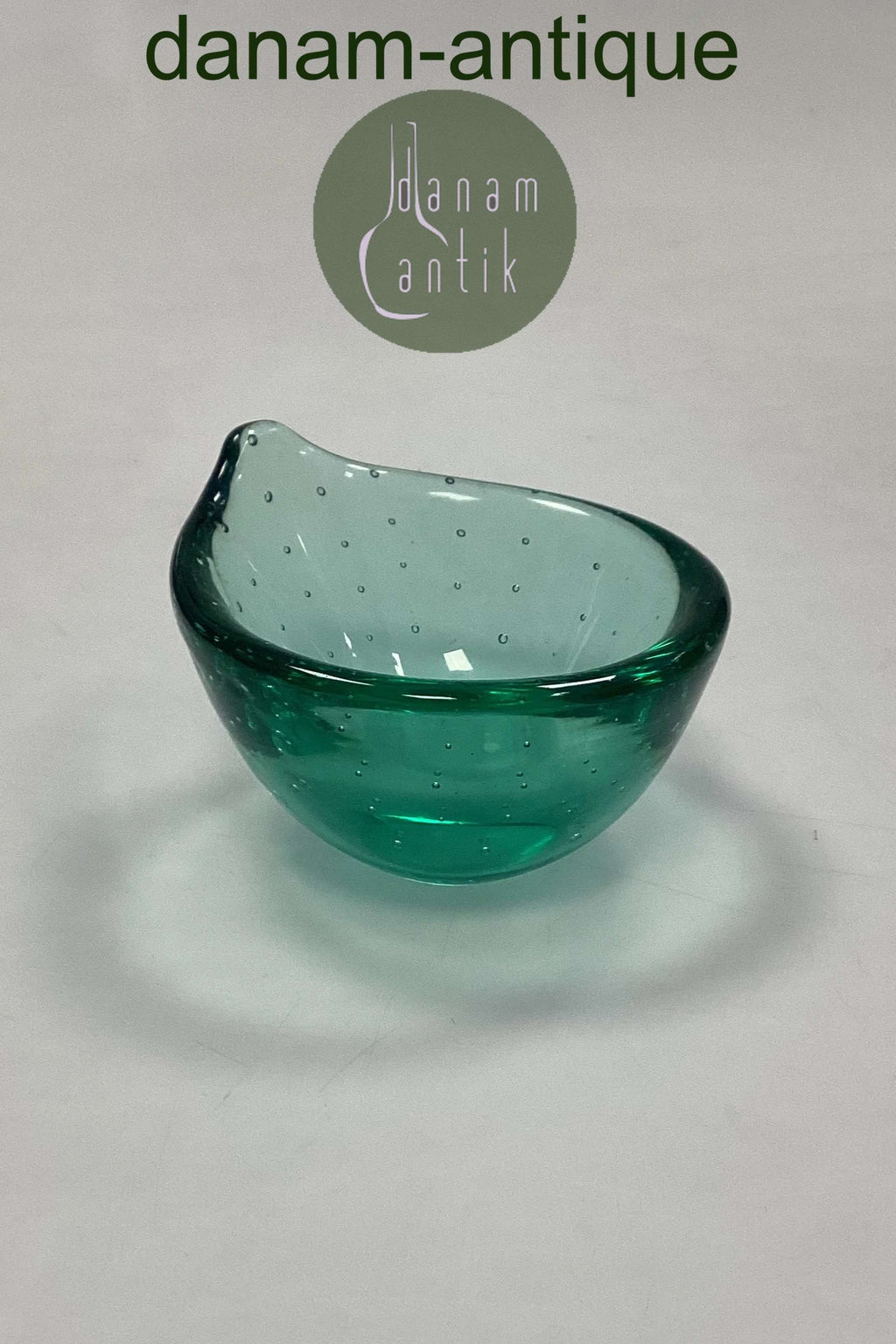 Lille Glasskål med bobler. Sandsynligvis skandinavisk. Måler 9 cm x 5,7 cm / 3,54 in. x 2,24 in. Lettere brugsspor på kanten og i bunden.