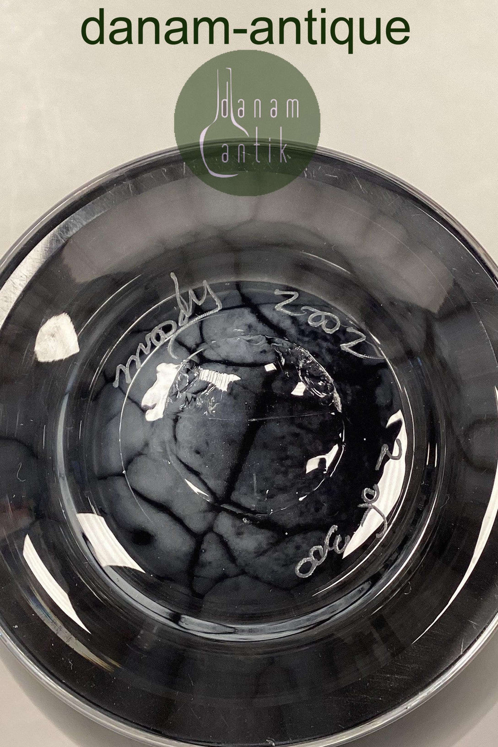 Glasvase af James Moody No. 2/300. Mundblæst vase i blågrå nuancer.